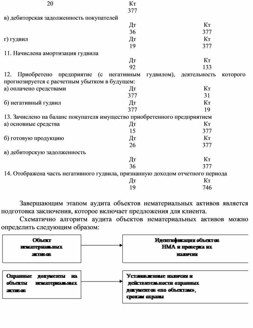 По каждому направлению проверки нематериальных активов и гудвила аудитор должен установить правильность бухгалтерских записей. Операции, связанные с приобретением, созданием, модернизацией нематериальных активов и гудвила, могут быть отображены следующим образом:
