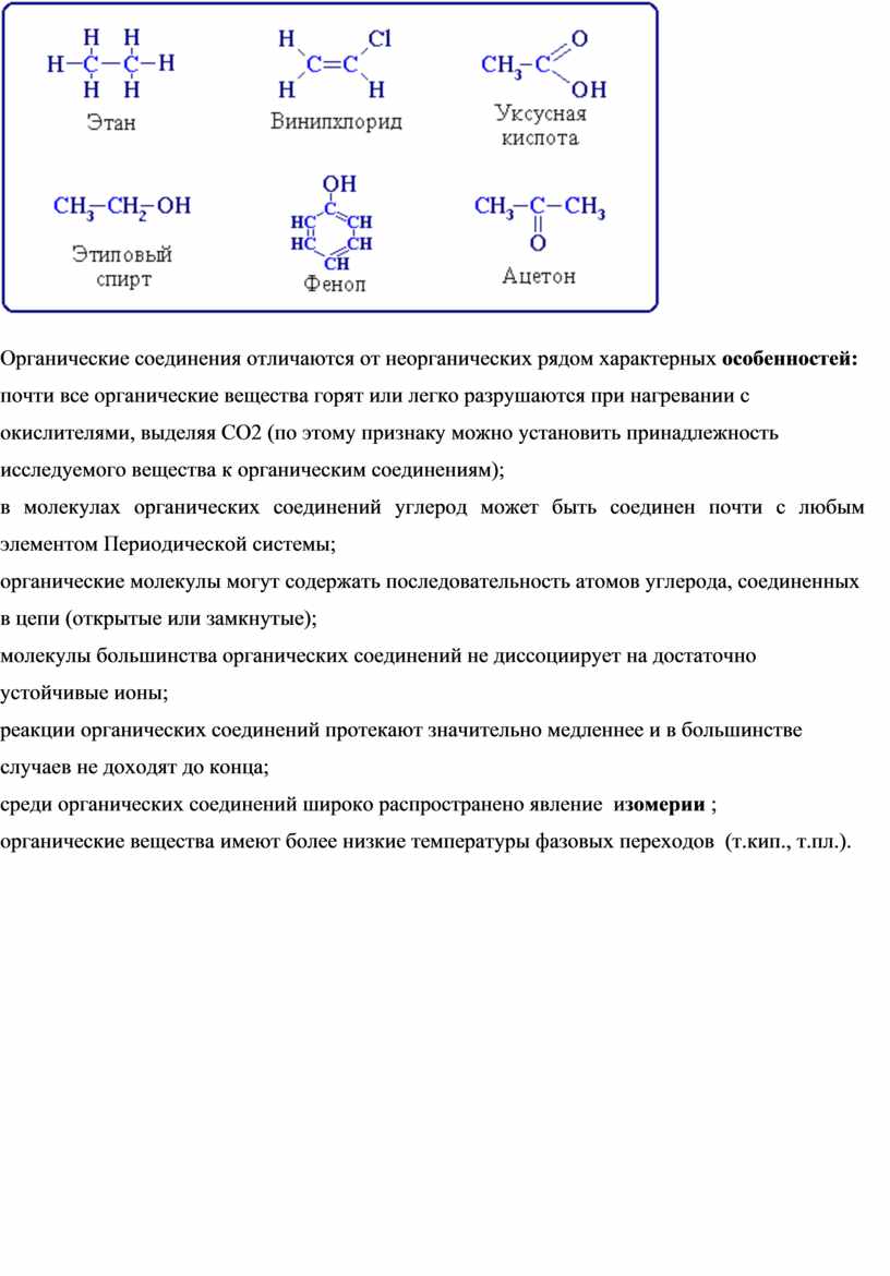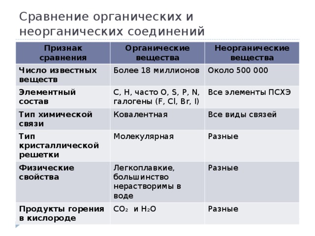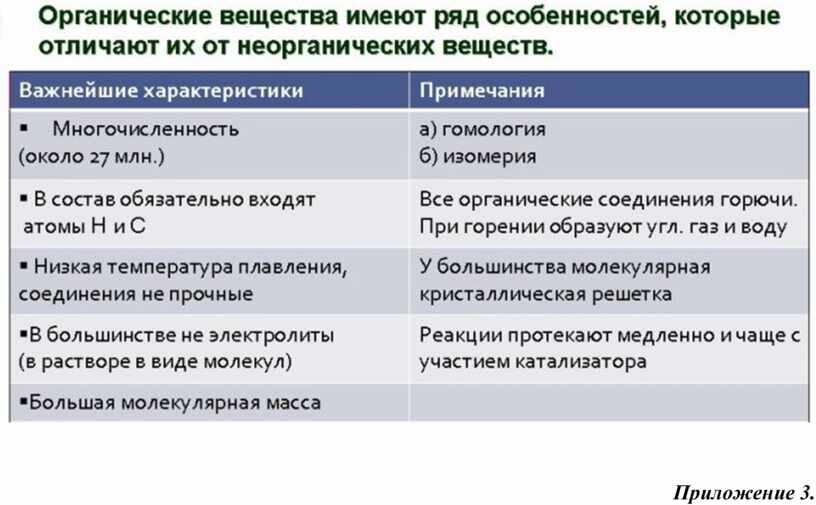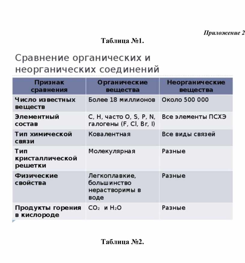 Приложение 2. Сравнение органических и неорганических соединений. |