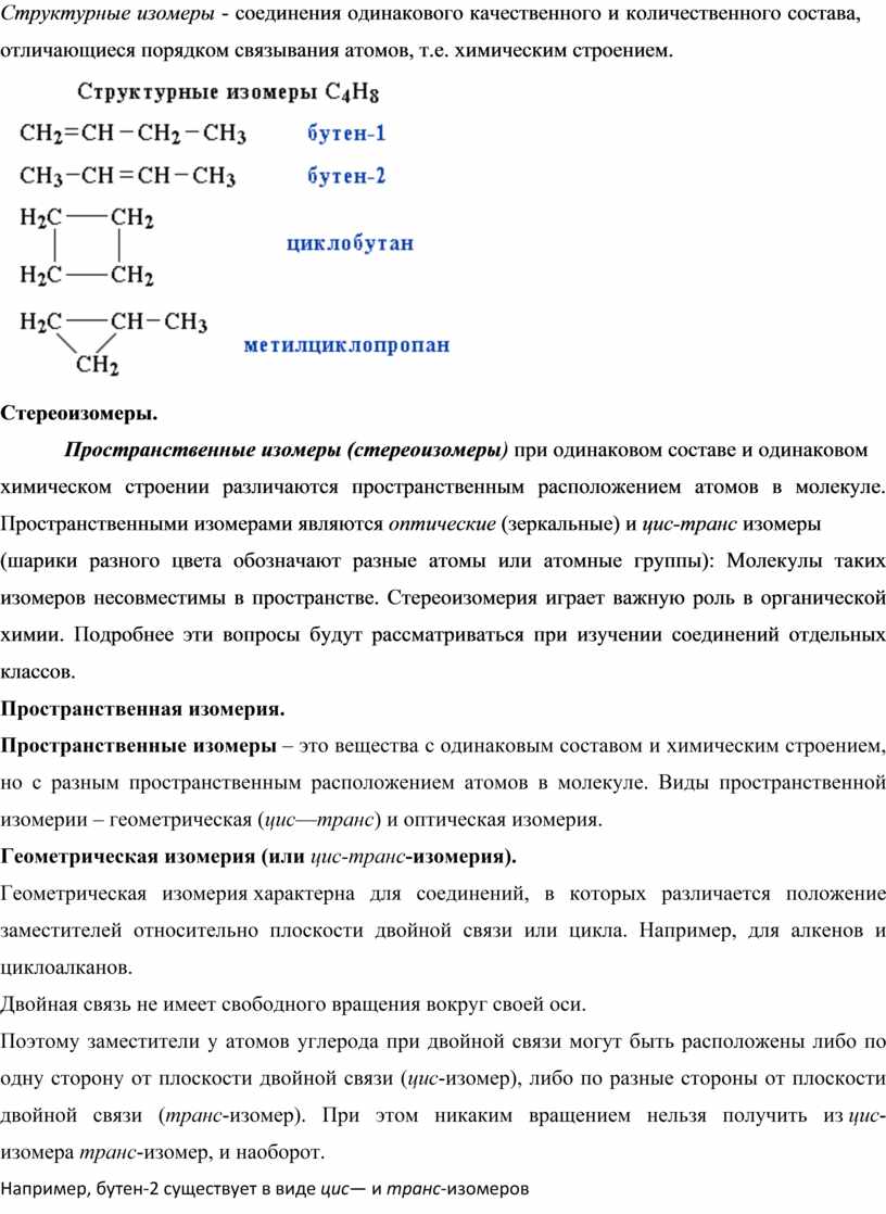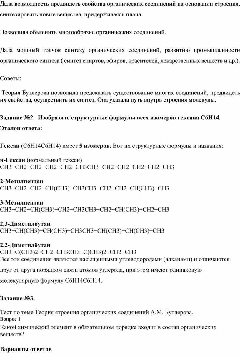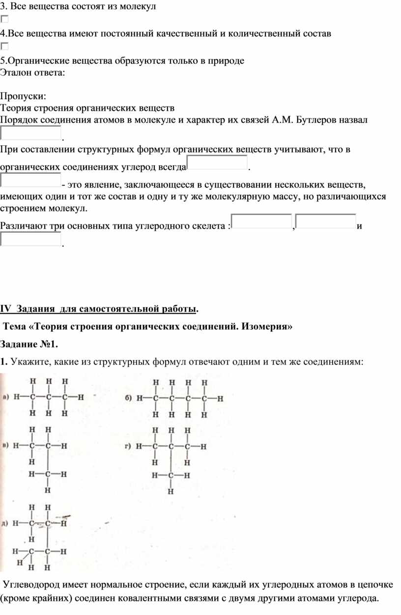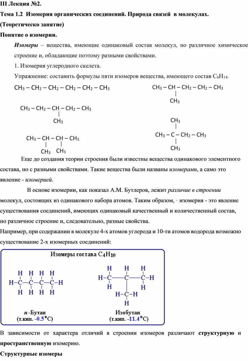 Тема «Теория строения органических соединений. Изомерия»