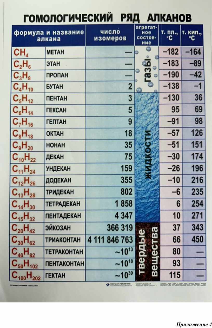 Приложение 3 Гомологический ряд алканов. |