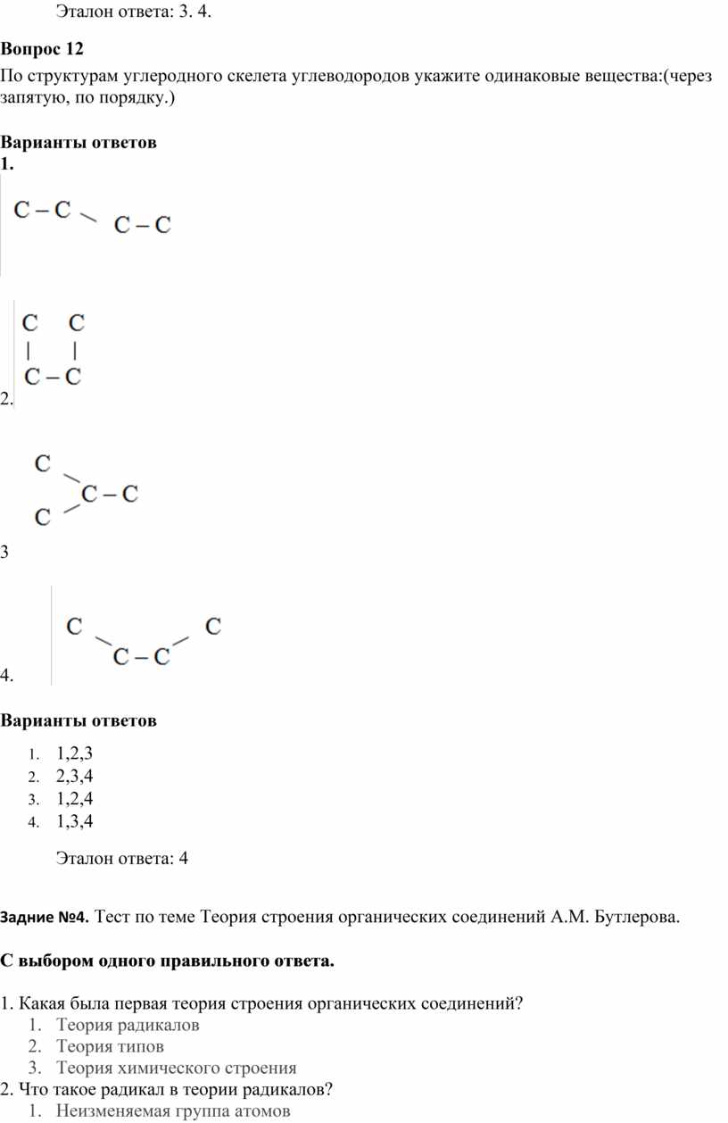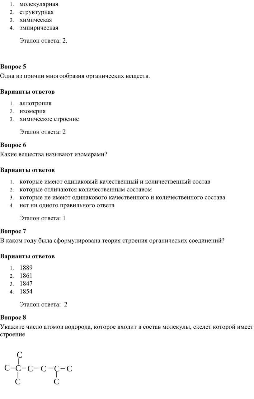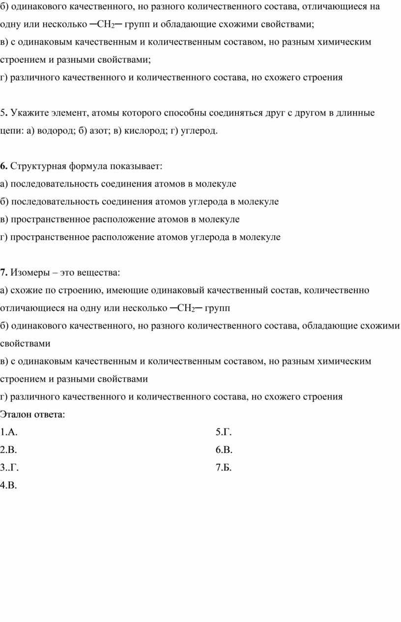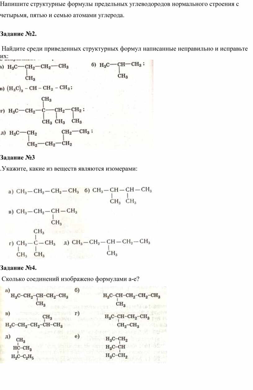 1. Укажите, какие из структурных формул отвечают одним и тем же соединениям:
