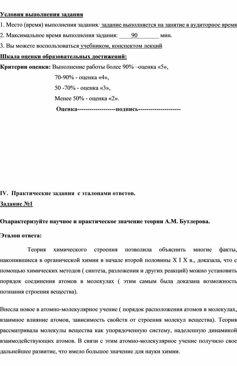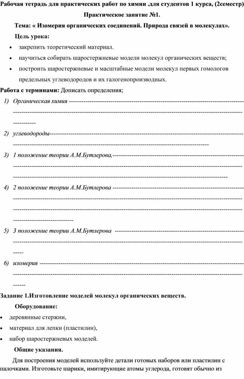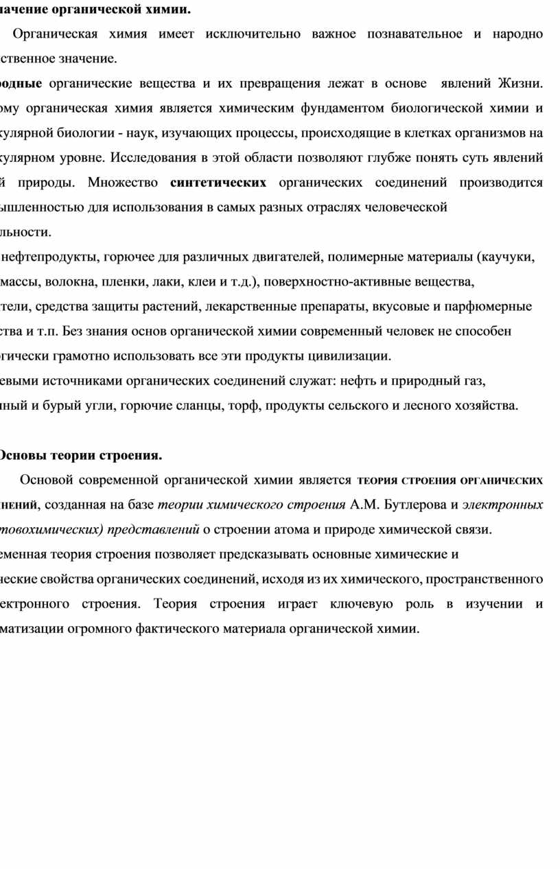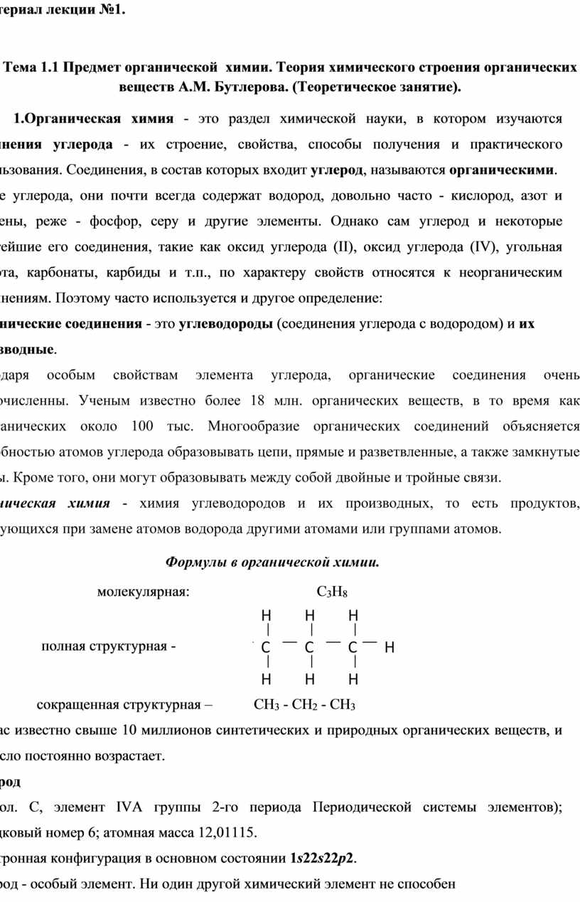 Тема 1.1 Предмет органической химии. Теория химического строения органических веществ А.М. Бутлерова. (Теоретическое занятие). |