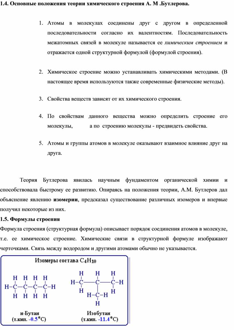 1.4.. Основные положения теории химического строения А.М.Бутлерова |