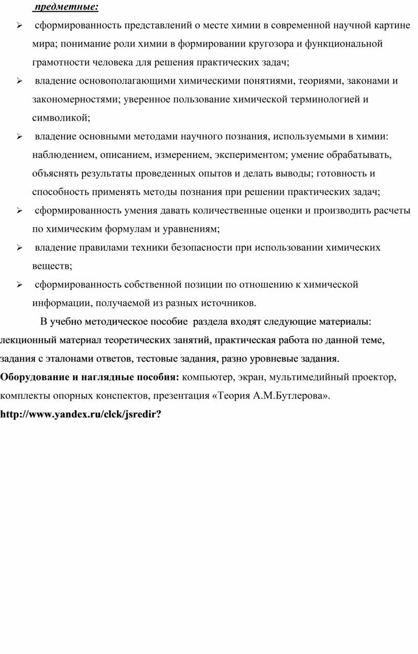 Ø основные теории химии; строения органических соединений;