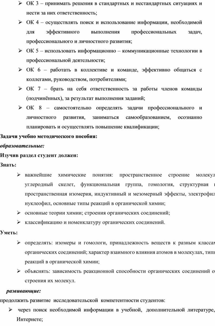 Ø важнейшие химические понятия: пространственное строение молекул, углеродный скелет, функциональная группа, гомология, структурная и пространственная изомерия, индуктивный и мезомерный эффекты, электрофил, нуклеофил, основные типы реакций в органической химии;