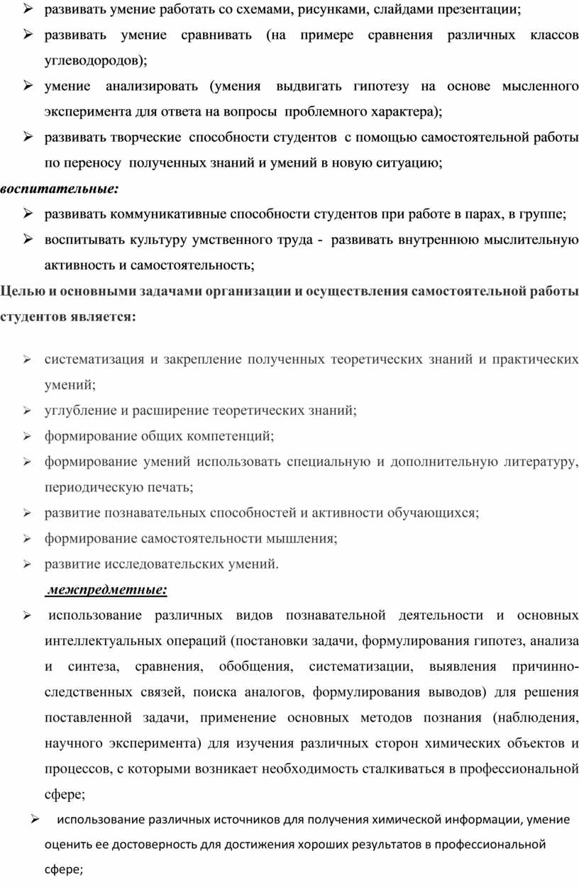 Ø умение использовать достижения современной химической науки и химических технологий для повышения собственного интеллектуального развития в выбранной профессиональной деятельности.