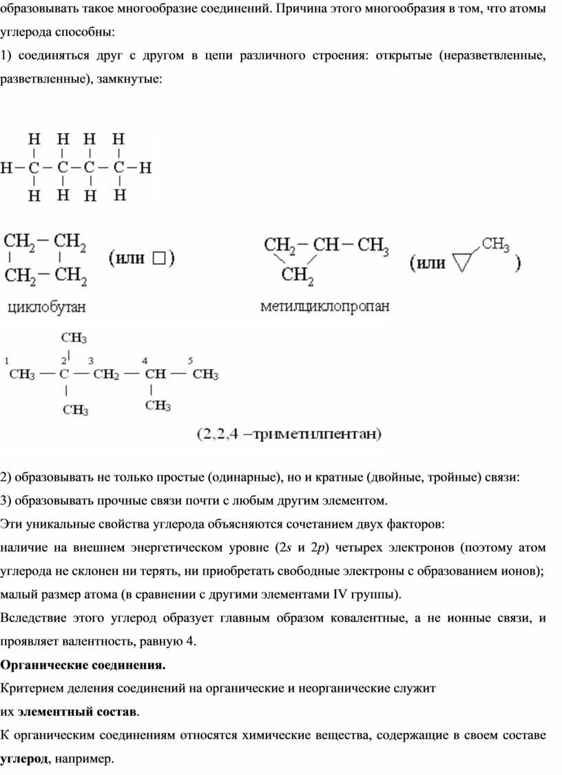 При составлении структурных формул органических веществ учитывают, что в