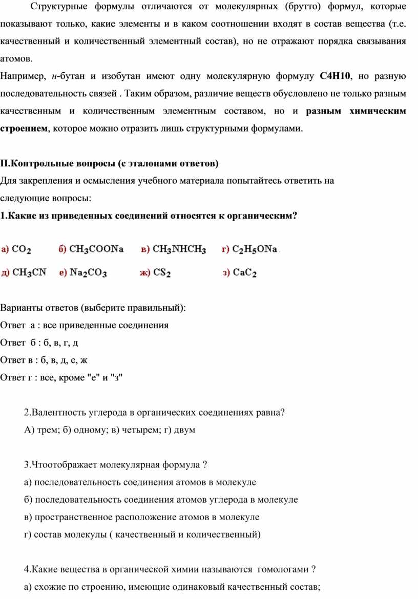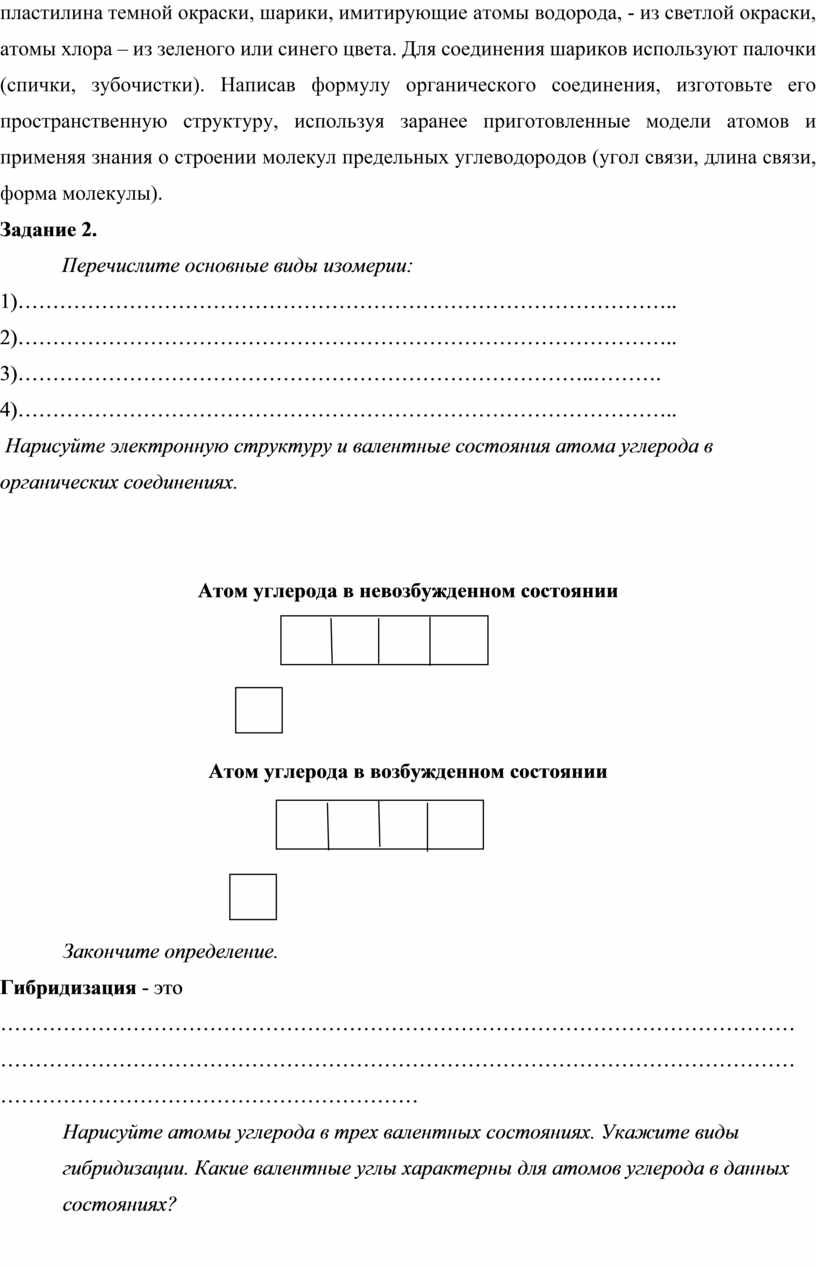 3.1 Изомерия органических соединений. Природа связей в молекулах. |
