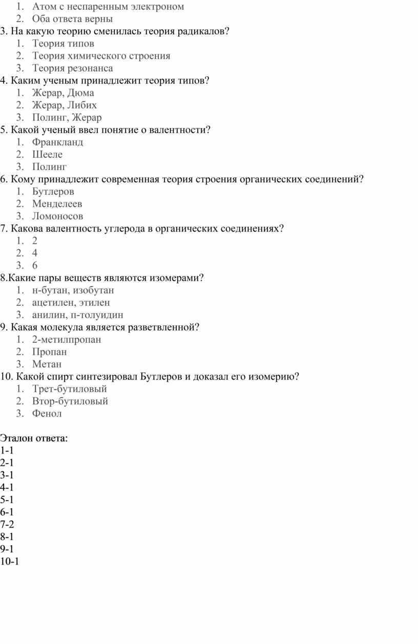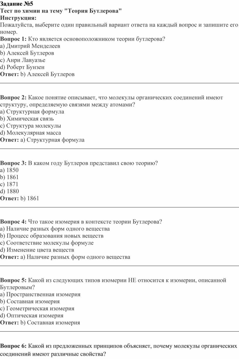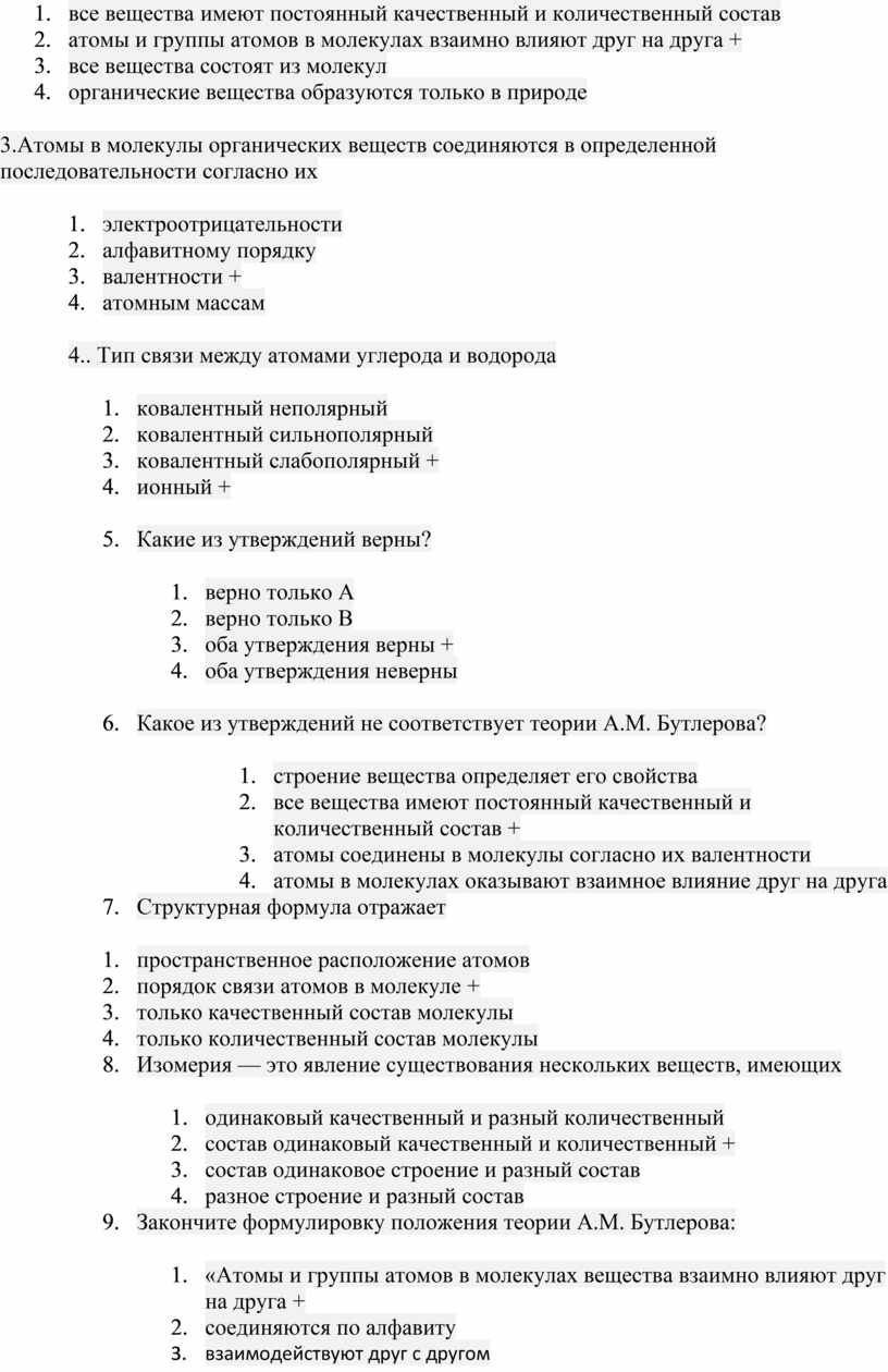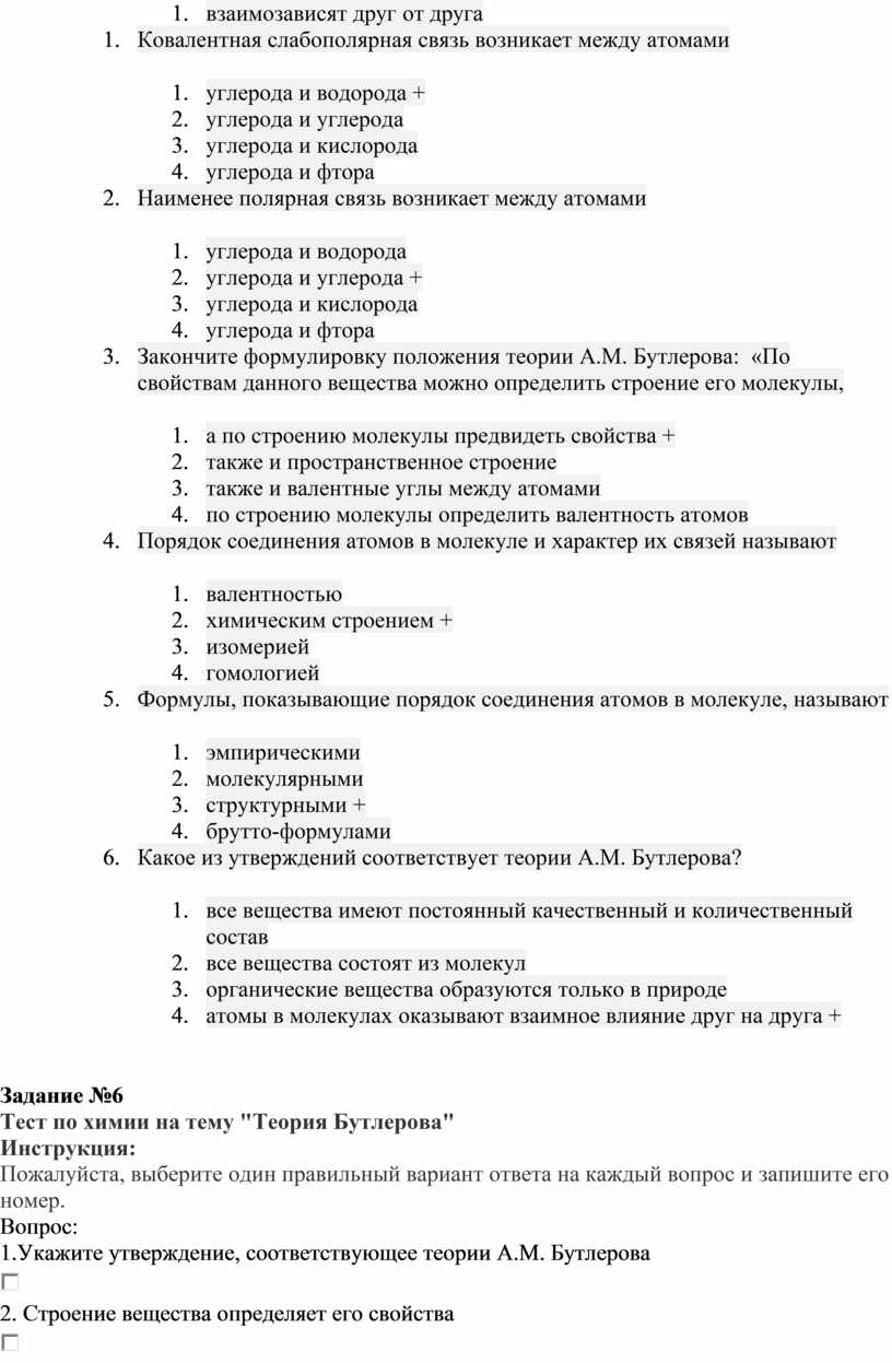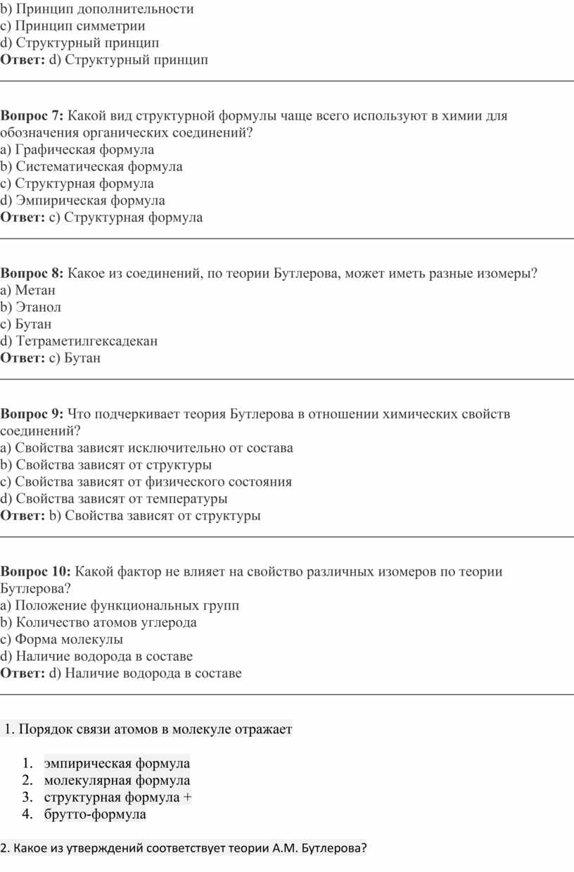 1.Укажите утверждение, соответствующее теории А.М. Бутлерова