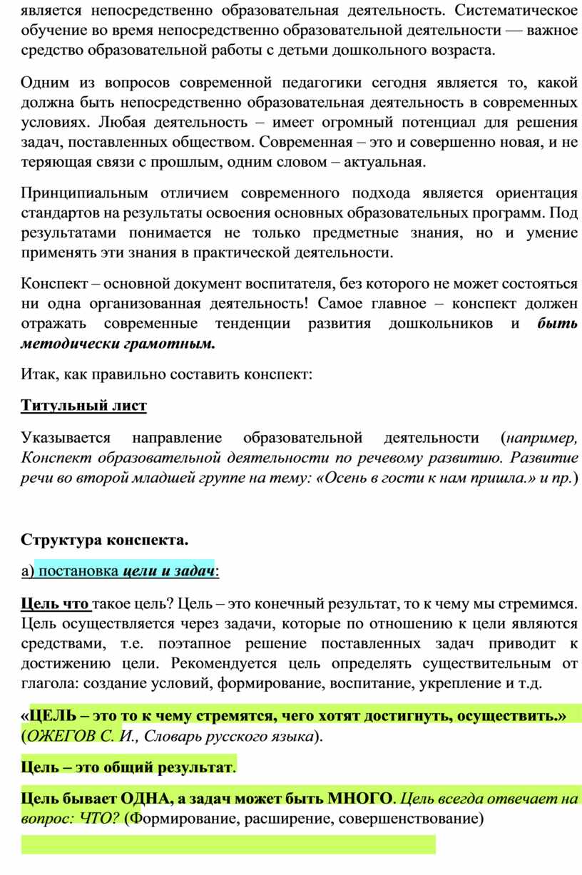 Конспект – основной документ воспитателя, без которого не может состояться ни одна организованная деятельность! Самое главное – конспект должен отражать современные тенденции развития дошкольников и быть методически грамотным.