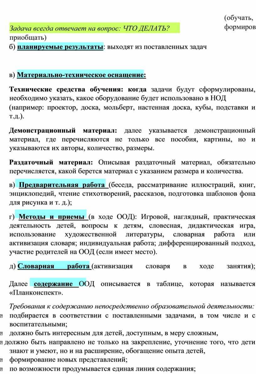 средства обучения: когда задачи будут сформулированы, необходимо указать,