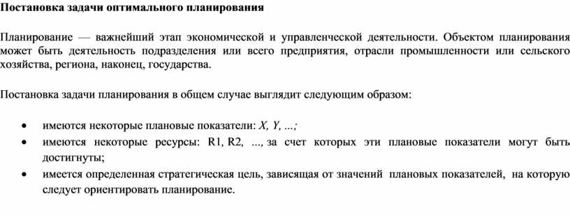 Планирование — важнейший этап экономической и управленческой деятельности. Объектом планирования может быть деятельность подразделения или всего предприятия, отрасли промышленности или сельского хозяйства, региона, наконец, государства.