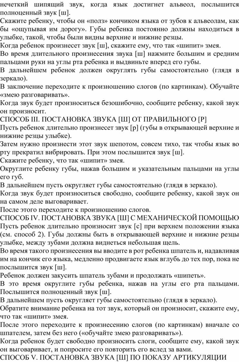 СПОСОБ V. ПОСТАНОВКА ЗВУКА [Ш] ПО ПОКАЗУ АРТИКУЛЯЦИИ