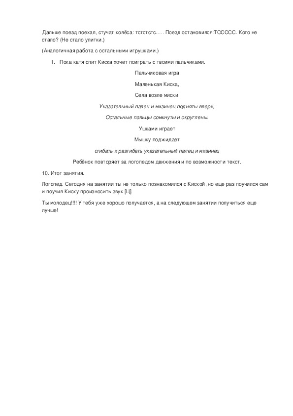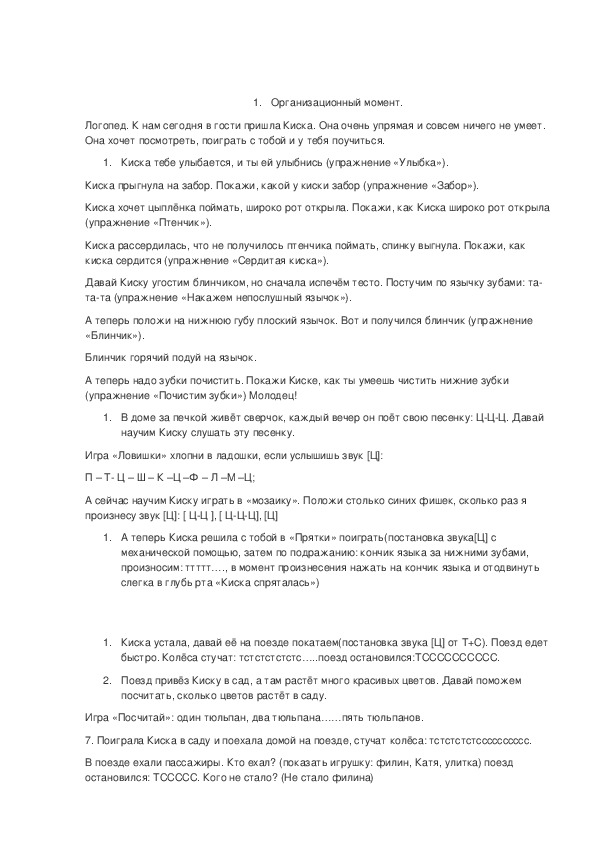 1. Киска устала, давай её на поезде покатаем(постановка звука [Ц] от Т+С). Поезд едет