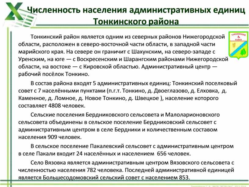 востоке — с Кировской областью. Административный центр — рабочий посёлок Тонкино.