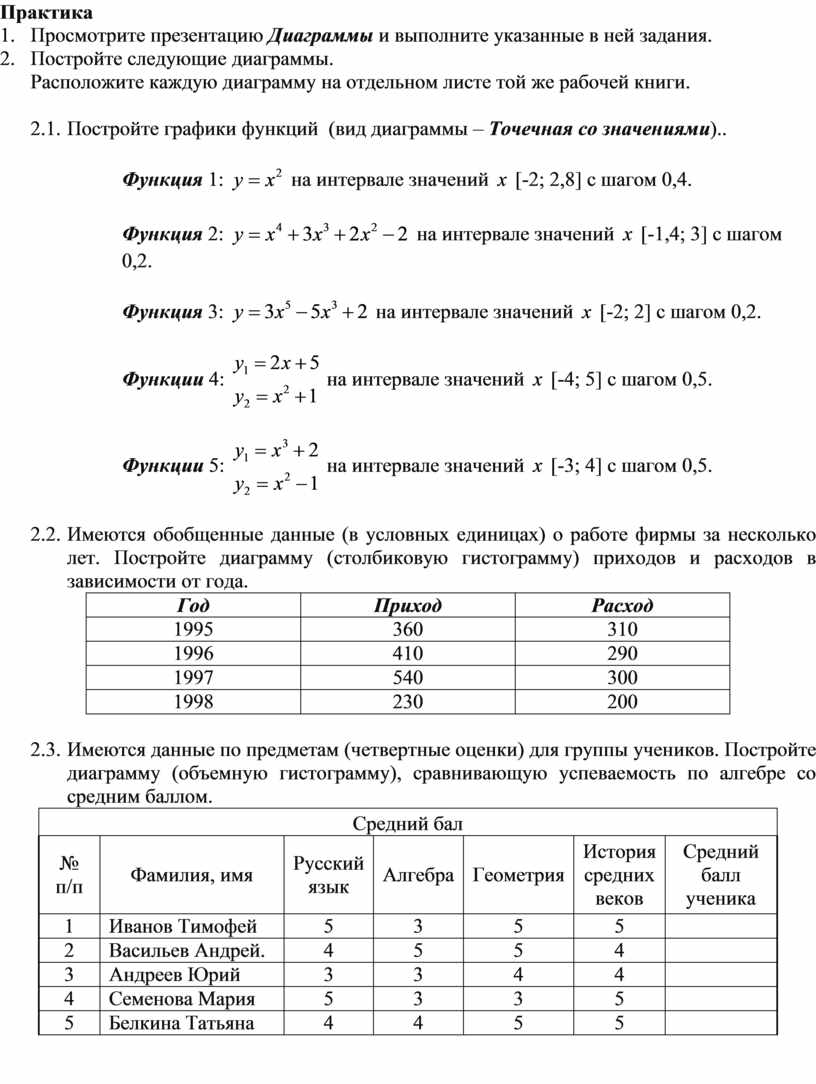 1. Просмотрите презентацию Диаграммы и выполните указанные в ней задания.