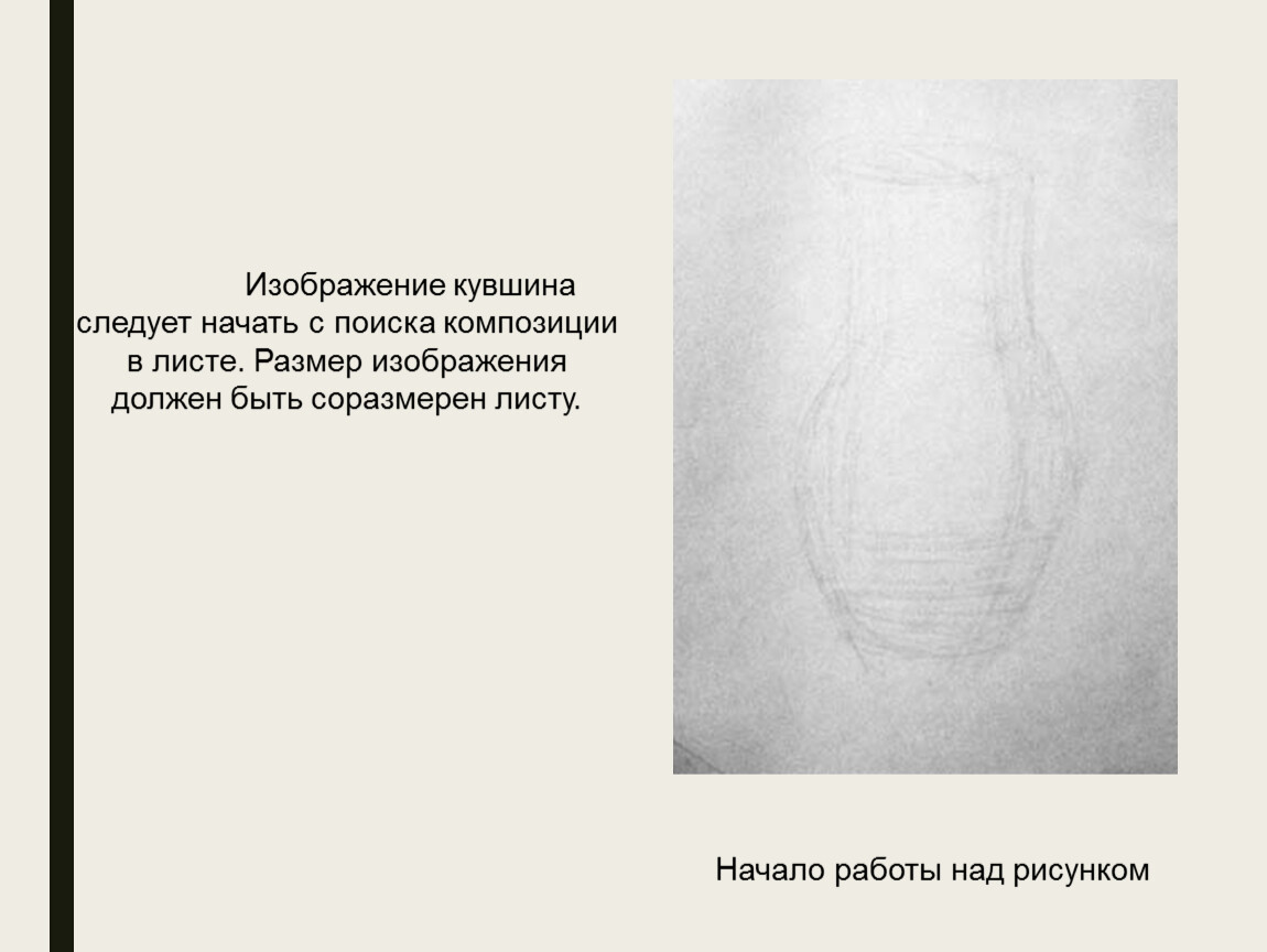 Изображение кувшина следует начать с поиска композиции в листе. Размер изображения должен быть соразмерен листу.