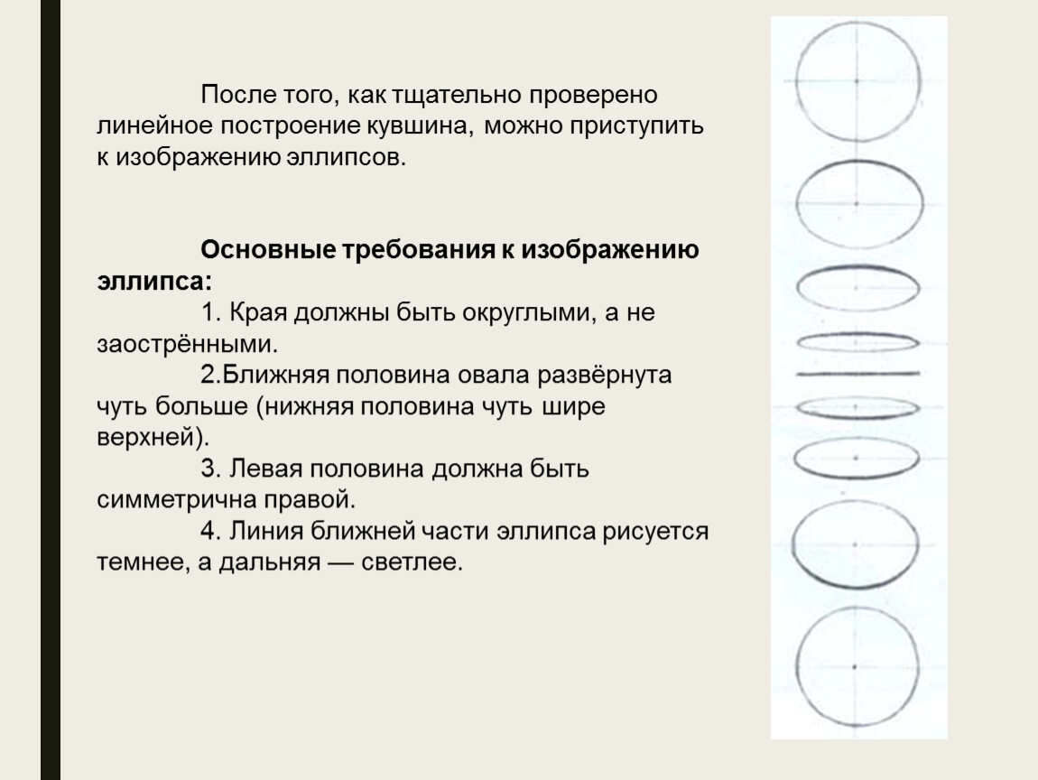 После того, как тщательно проверено линейное построение кувшина, можно приступить к изображению эллипсов.