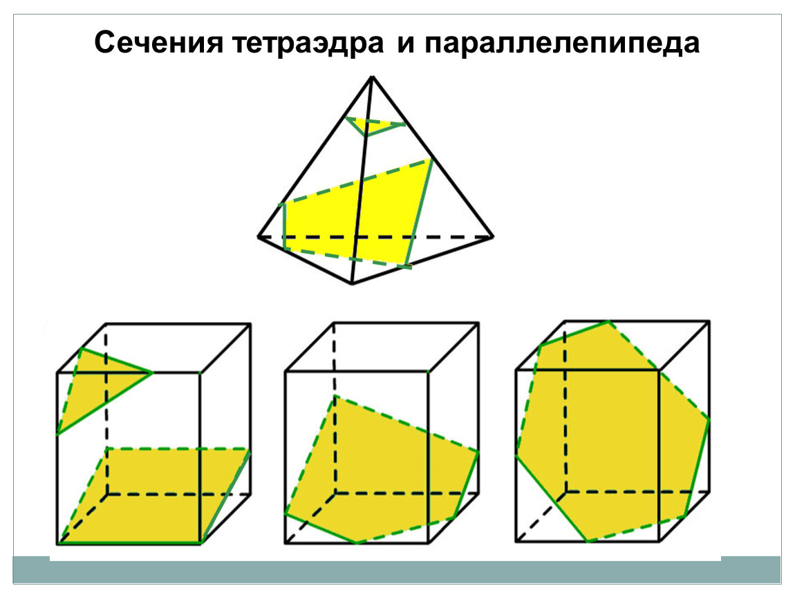 Рассмотреть возможные варианты сечений тетраэдра и параллелепипеда.