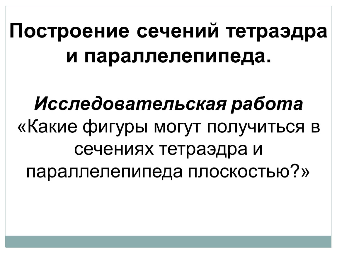 Выработать навыки построения сечений тетраэдра и параллелепипеда при различных случаях задания секущей плоскости.