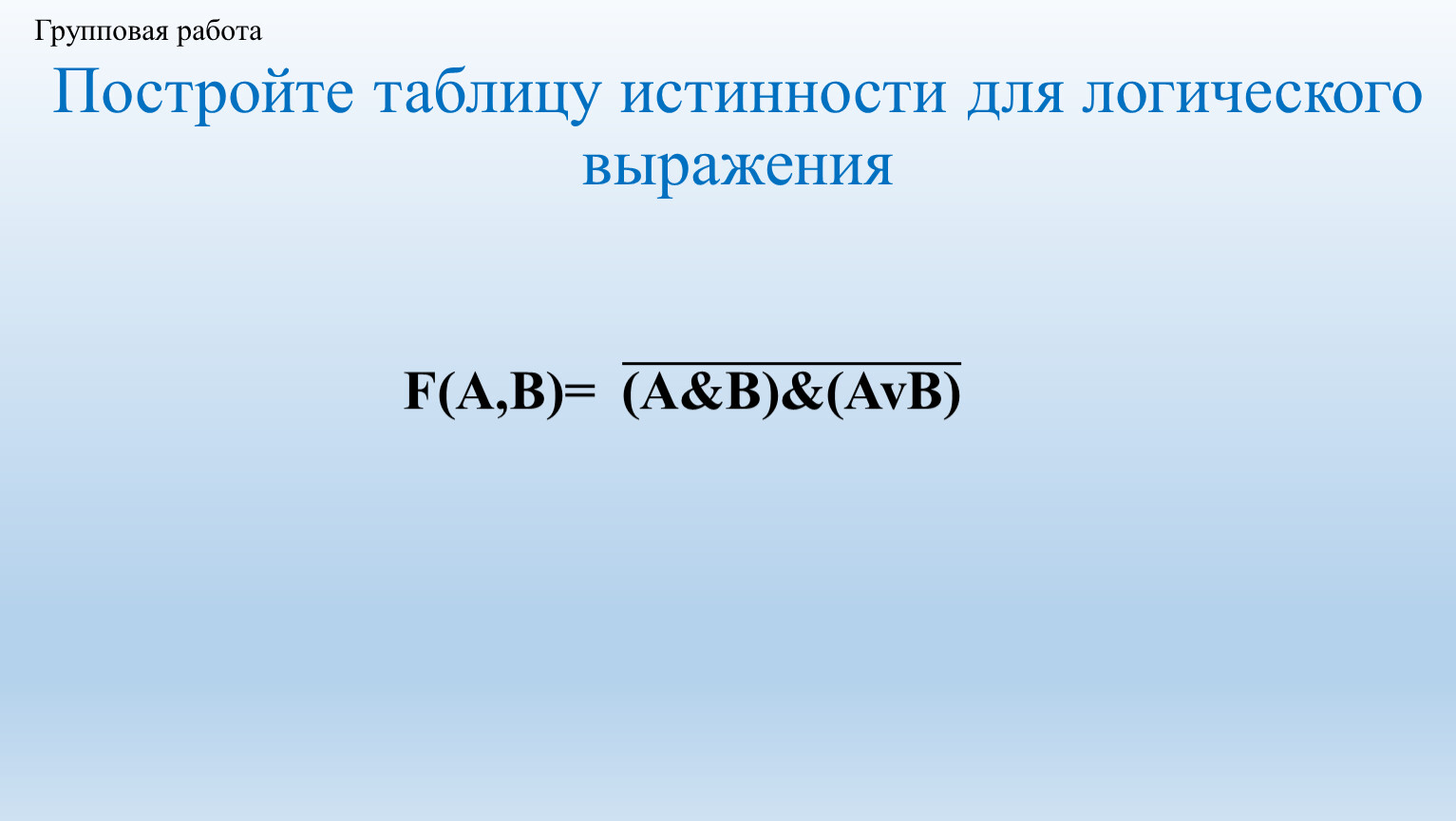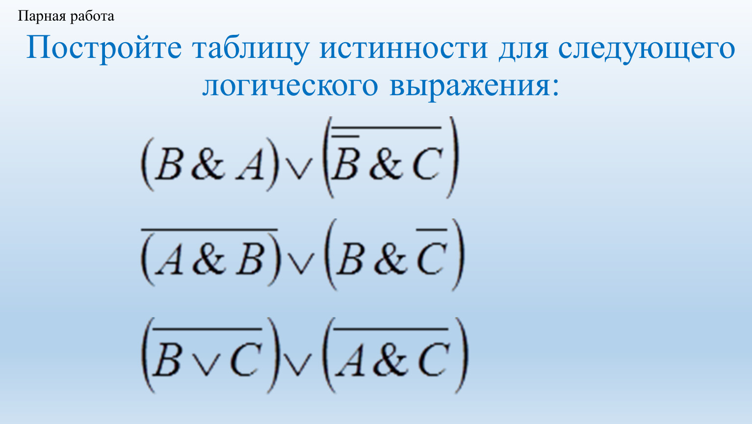 Постройте таблицу истинности для логического выражения