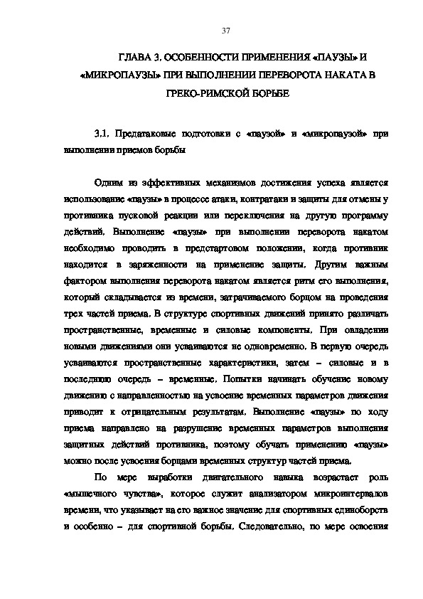 3.1. Предатаковые подготовки с «паузой» и «микропаузой» при