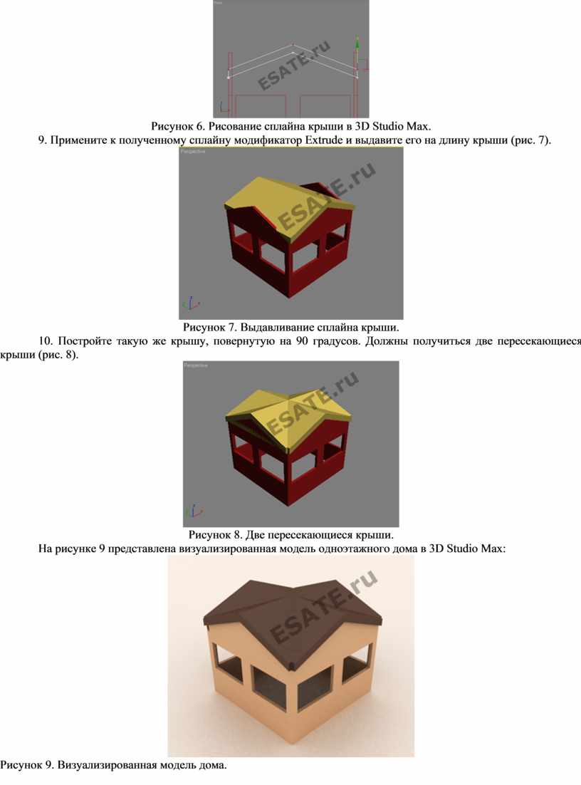 9. Примените к полученному сплайну модификатор Extrude и выдавите его на длину крыши (рис. 7).