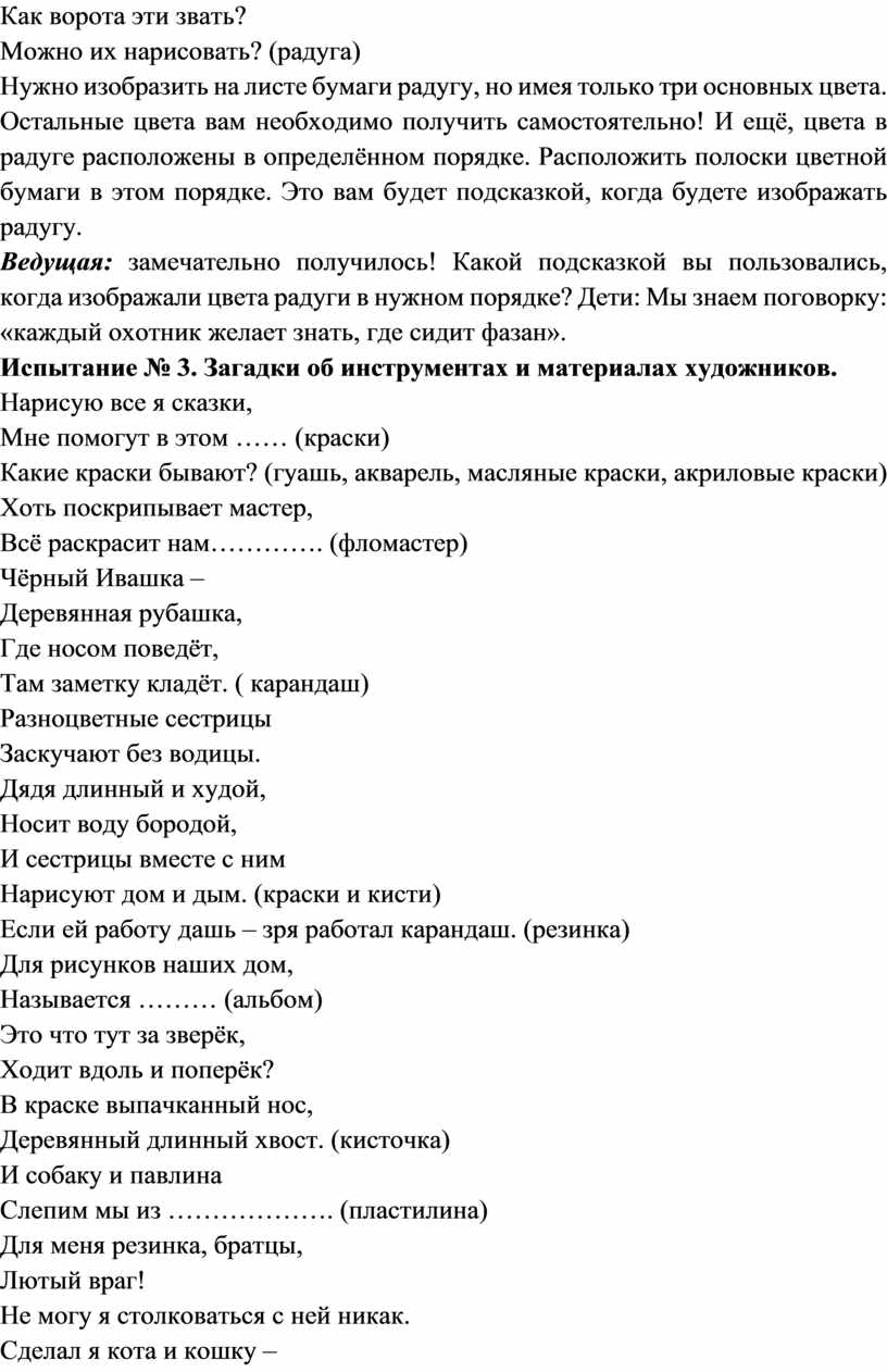 Ведущая: замечательно получилось! Какой подсказкой вы пользовались, когда изображали цвета радуги в нужном порядке? Дети: Мы знаем поговорку: «каждый охотник желает знать, где сидит фазан».