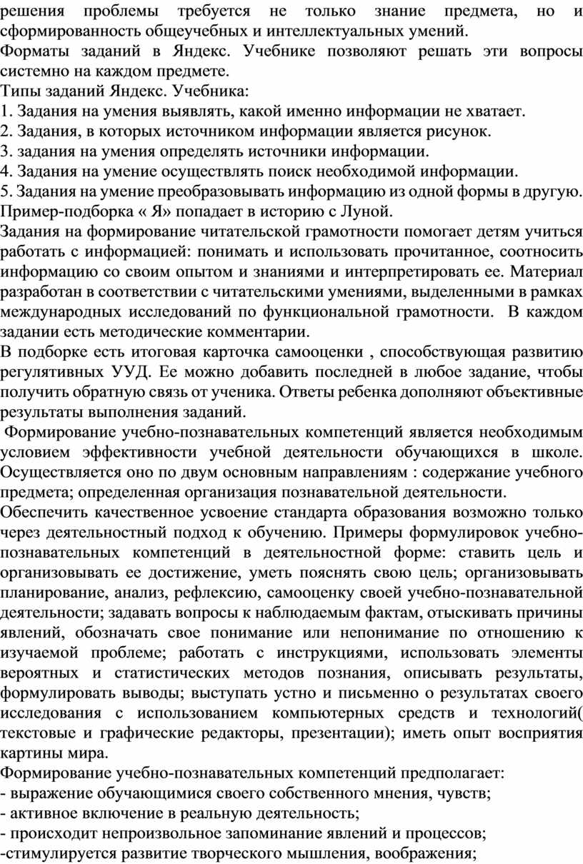 Потенциал заданий Яндекс. Учебник для выбора учебных ситуаций, способствующих развитию функциональной грамотности на уроках русского языка, математики и окружающего мира в начальной школе