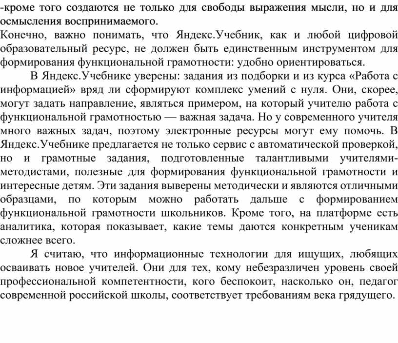 Конечно, важно понимать, что Яндекс.Учебник, как и любой цифровой образовательный ресурс, не должен быть единственным инструментом для формирования функциональной грамотности: удобно ориентироваться.