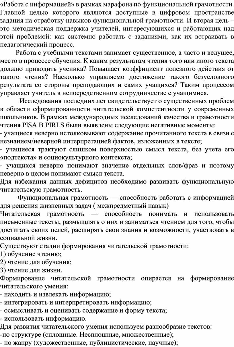 Функциональная грамотность — способность работать с информацией для решения жизненных задач ( межпредметный навык)