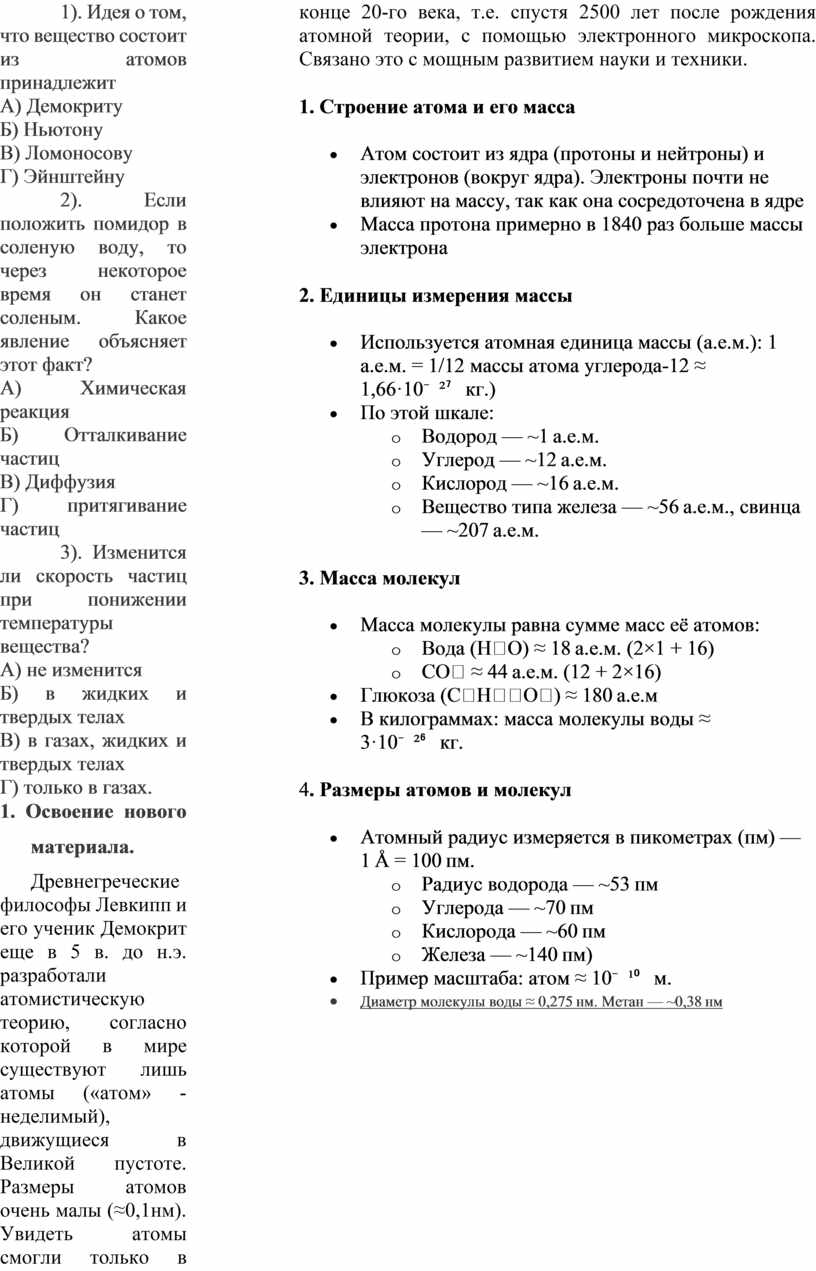 1). Идея о том, что вещество состоит из атомов принадлежит