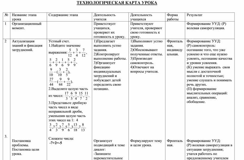 ТЕХНОЛОГИЧЕСКАЯ КАРТА УРОКА