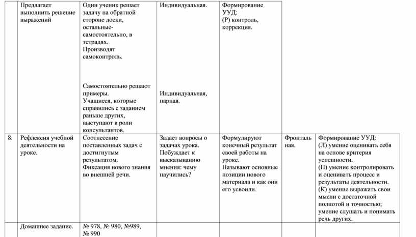 Формирование УУД: (Р) самоконтроль: осознание того, что уже усвоено и что еще нужно усвоить, осознание качества и уровня усвоения. (К) умение выражать свои мысли с достаточной полнотой и точностью; умение слушать и понимать речь других. (П) формирование мыслительных операций: анализ, сравнение, обобщение.