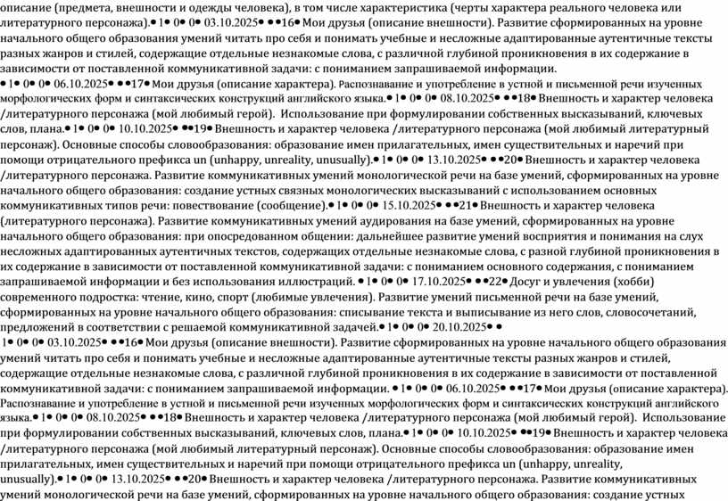 Внешность и характер человека /литературного персонажа. Развитие коммуникативных умений монологической речи на базе умений, сформированных на уровне начального общего образования: создание устных связных монологических высказываний с использованием основных коммуникативных типов речи: повествование (сообщение). |
