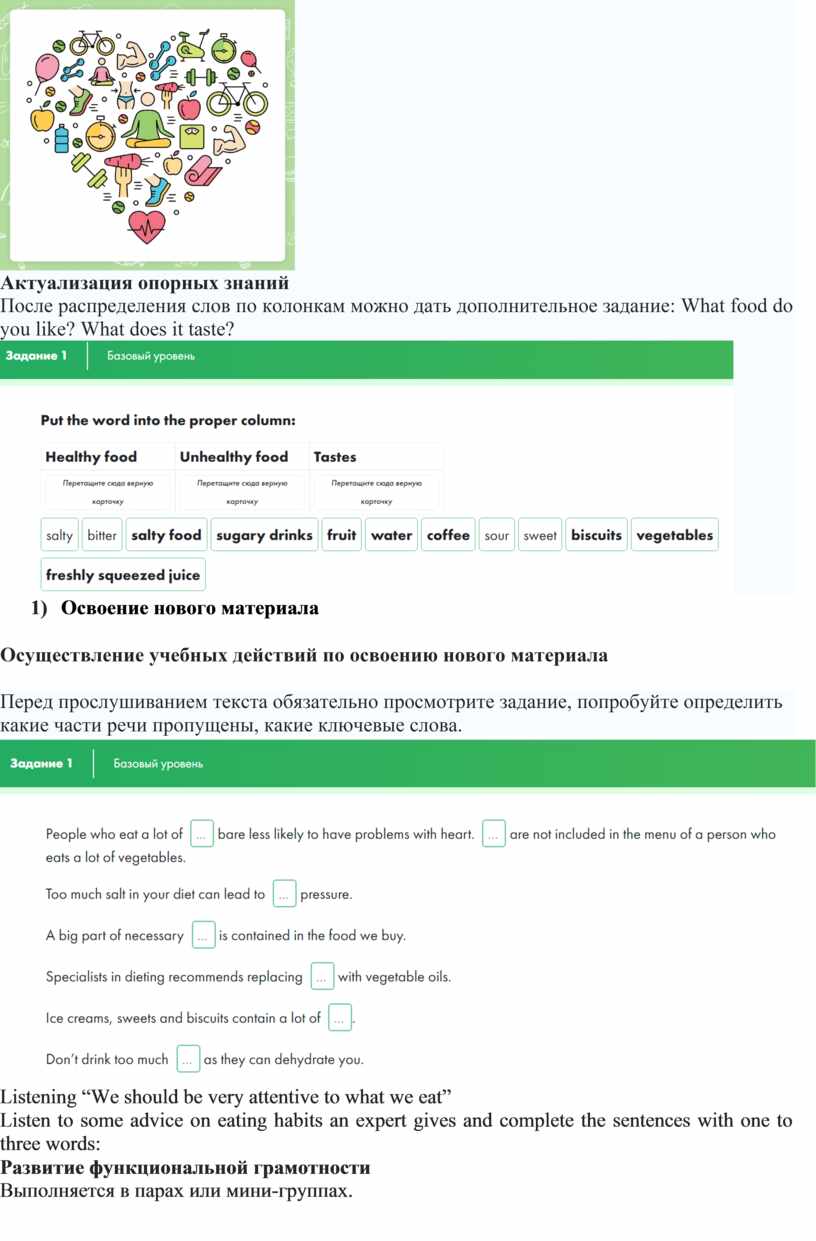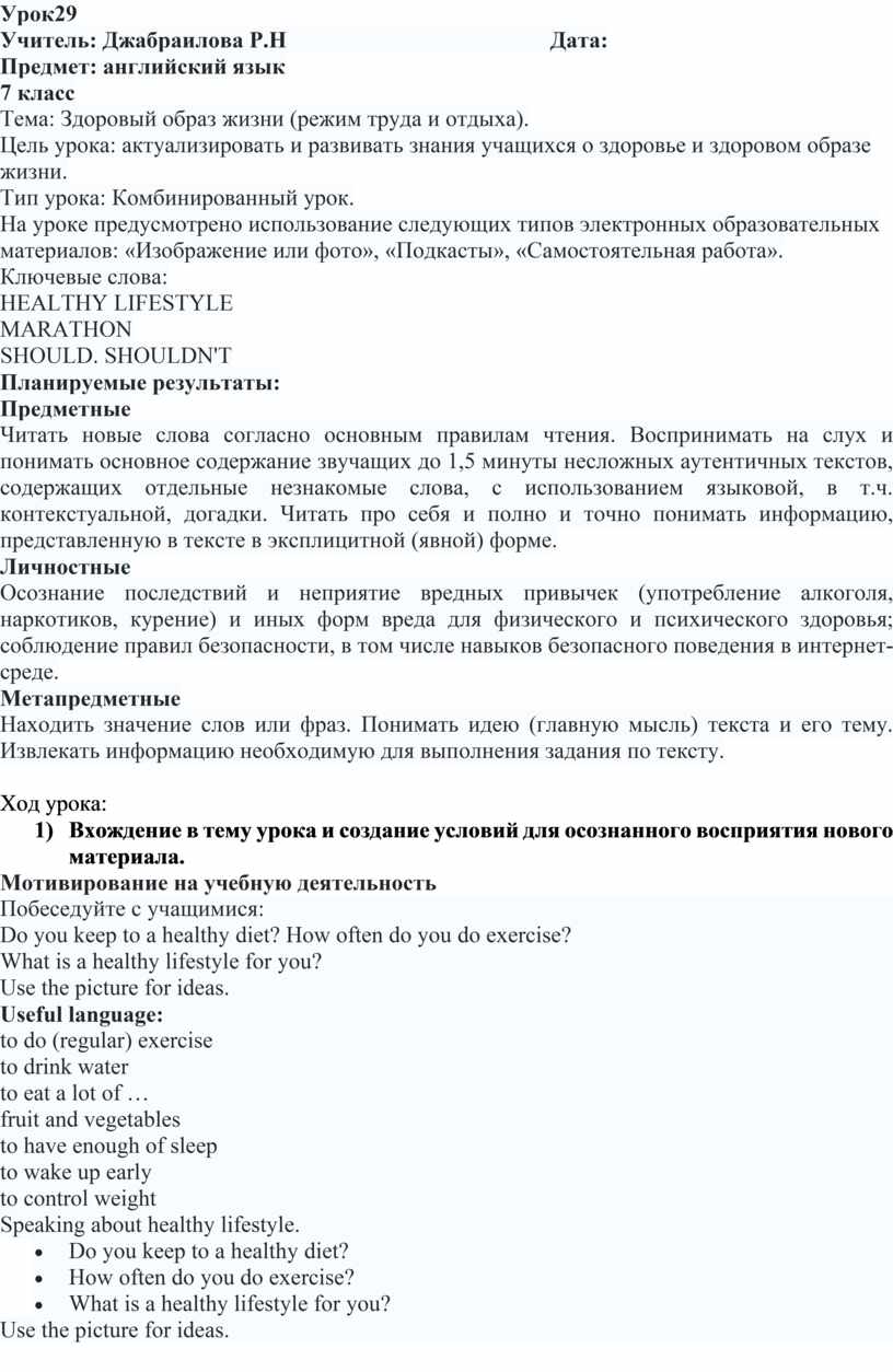 Цель урока: актуализировать и развивать знания учащихся о здоровье и здоровом образе жизни.