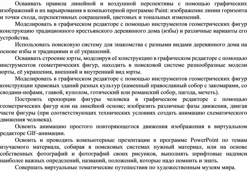 Важнейшей задачей является формирование активного, ценностного отношения к истории отечественной культуры, выраженной в её архитектуре, изобразительном искусстве, в национальных образах предметно-материальной и пространственной среды, в понимании красоты человека.