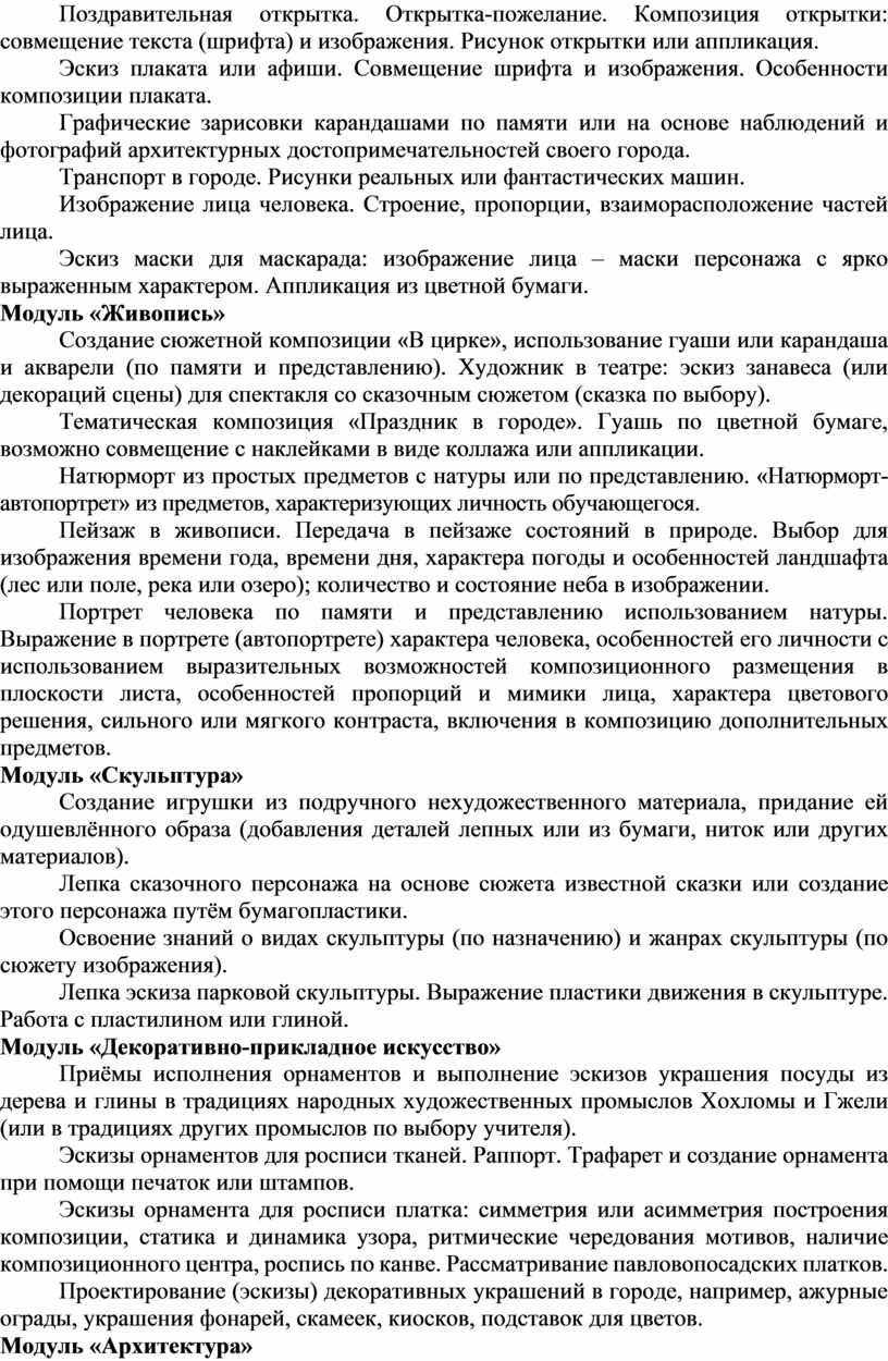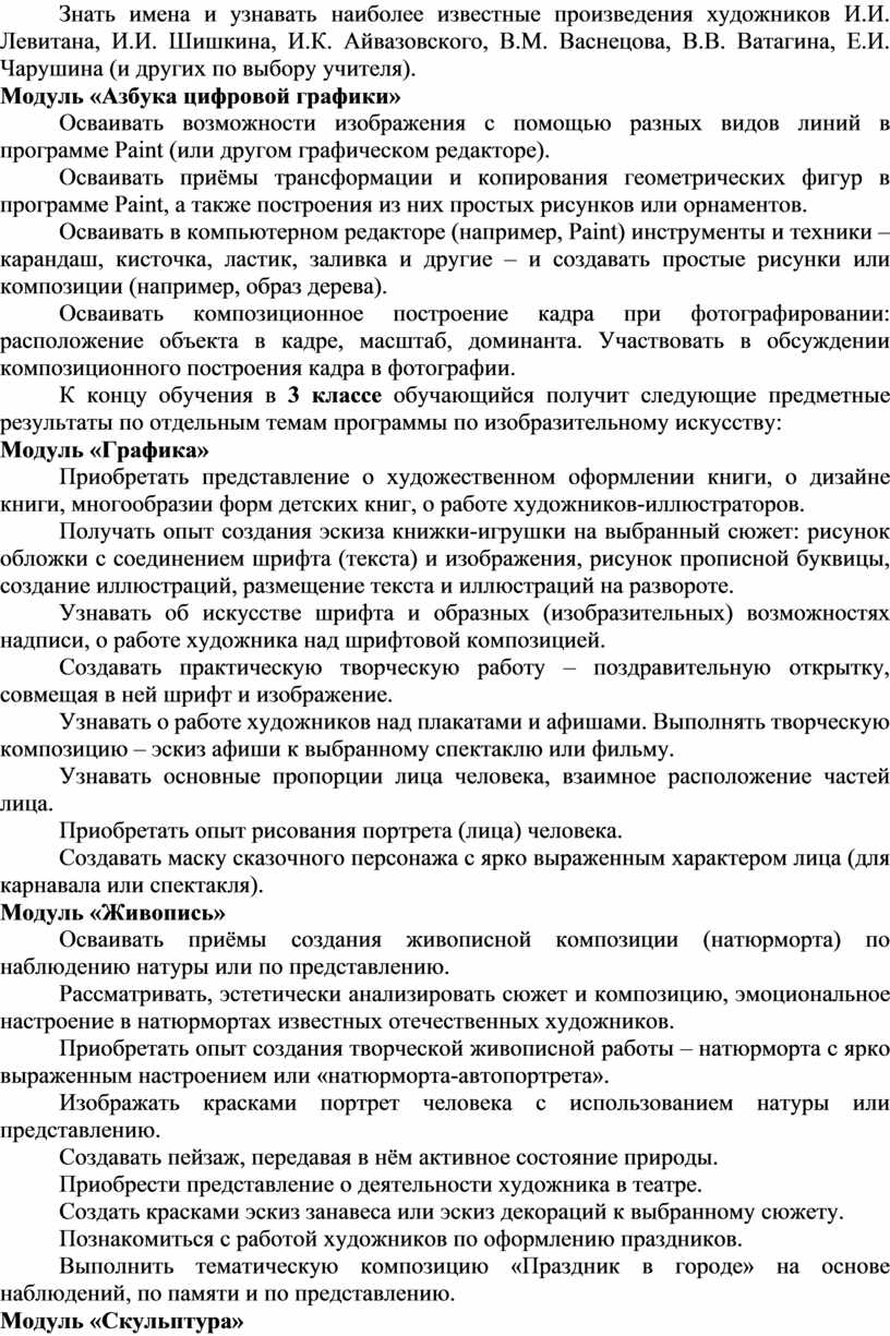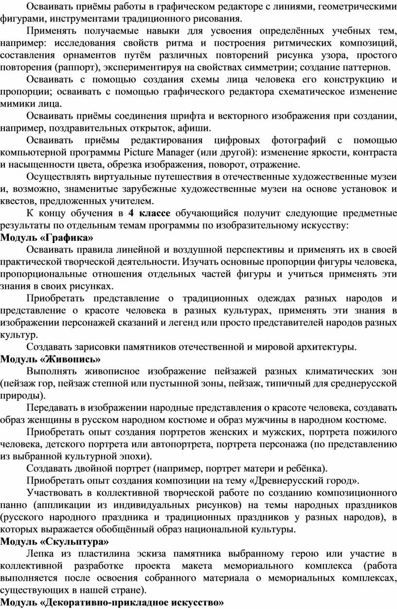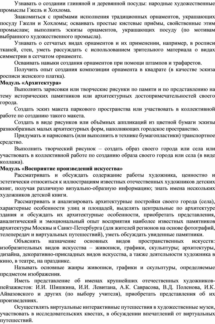 Содержание программы по изобразительному искусству структурировано как система тематических модулей. Изучение содержания всех модулей в 1–4 классах обязательно.