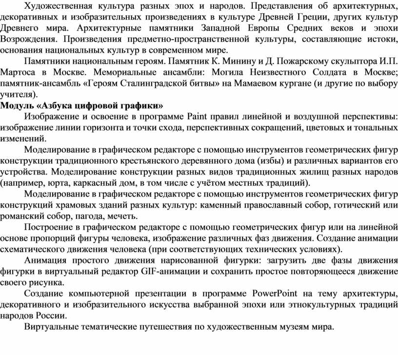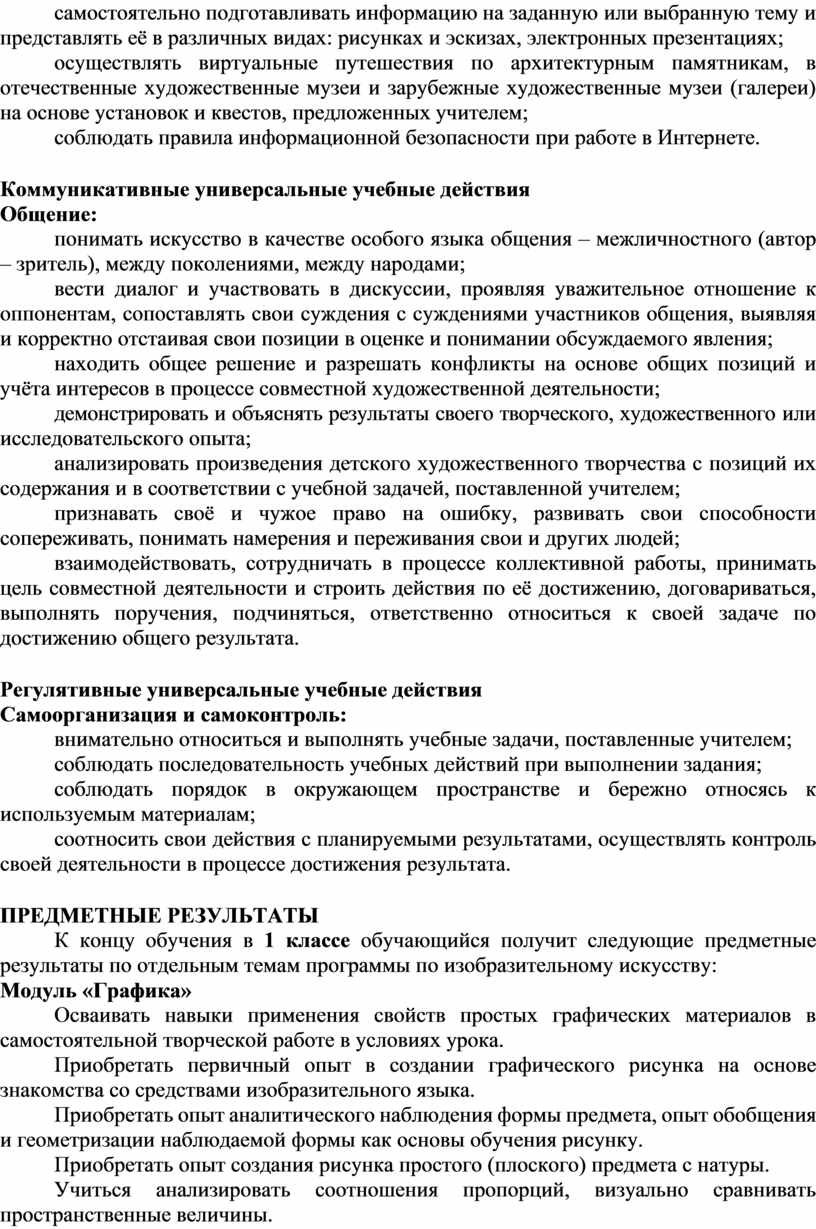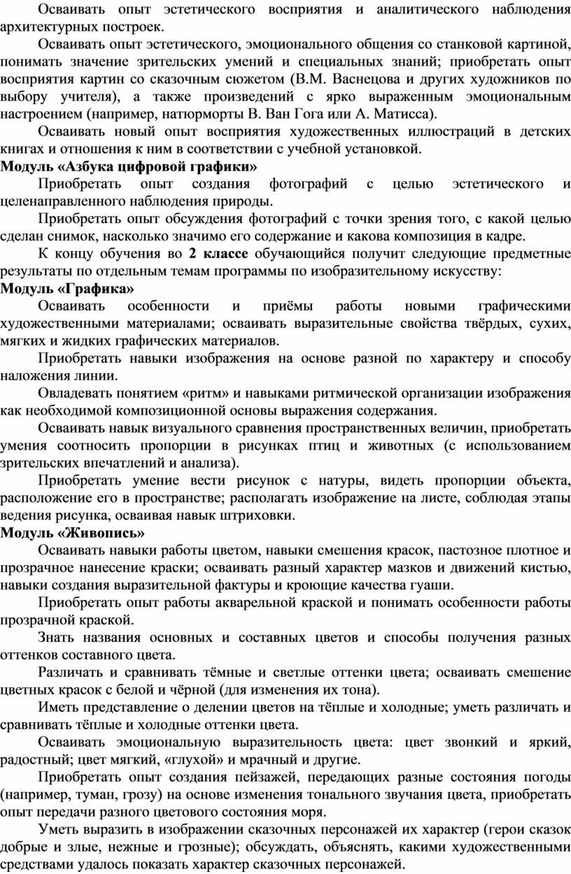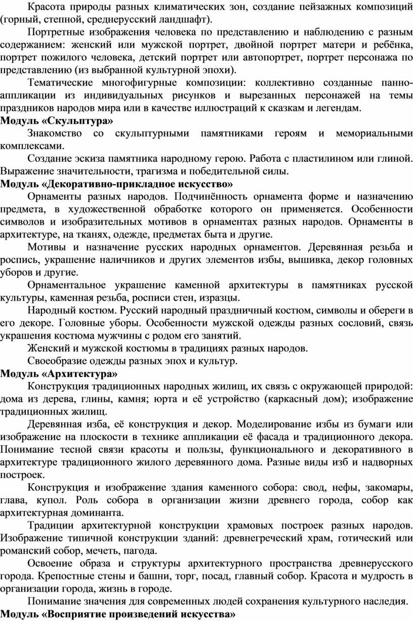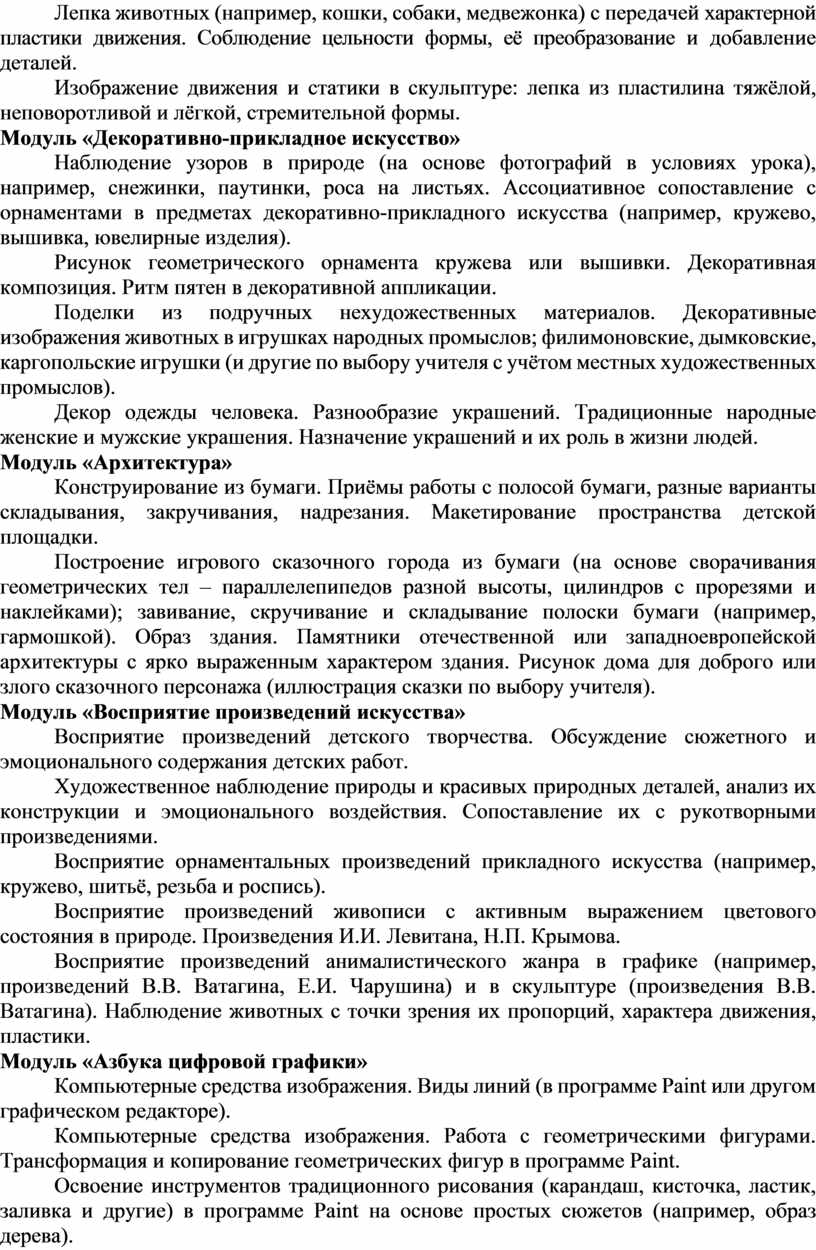 Содержание программы по изобразительному искусству структурировано как система тематических модулей. Изучение содержания всех модулей в 1–4 классах обязательно.