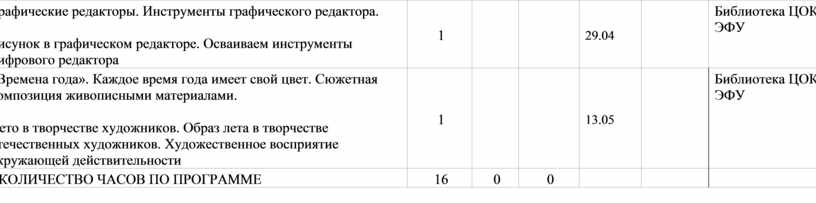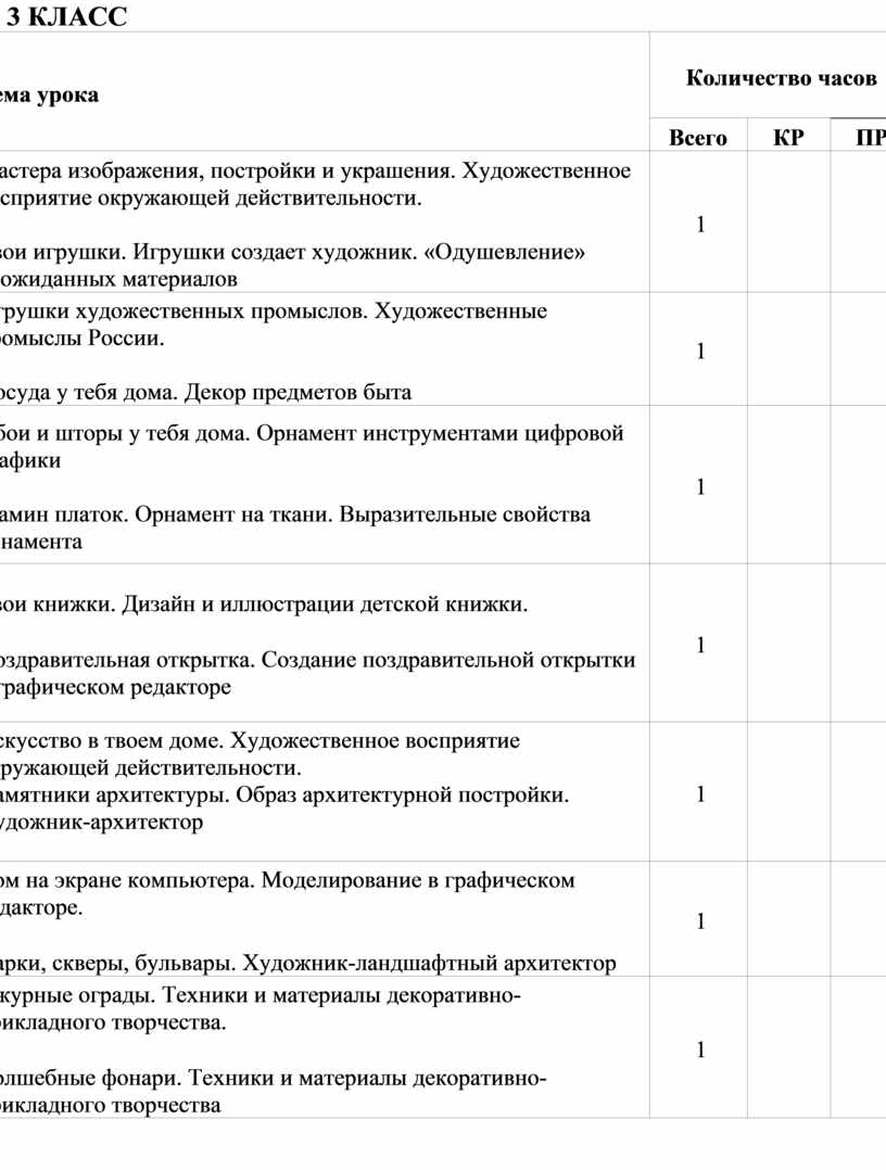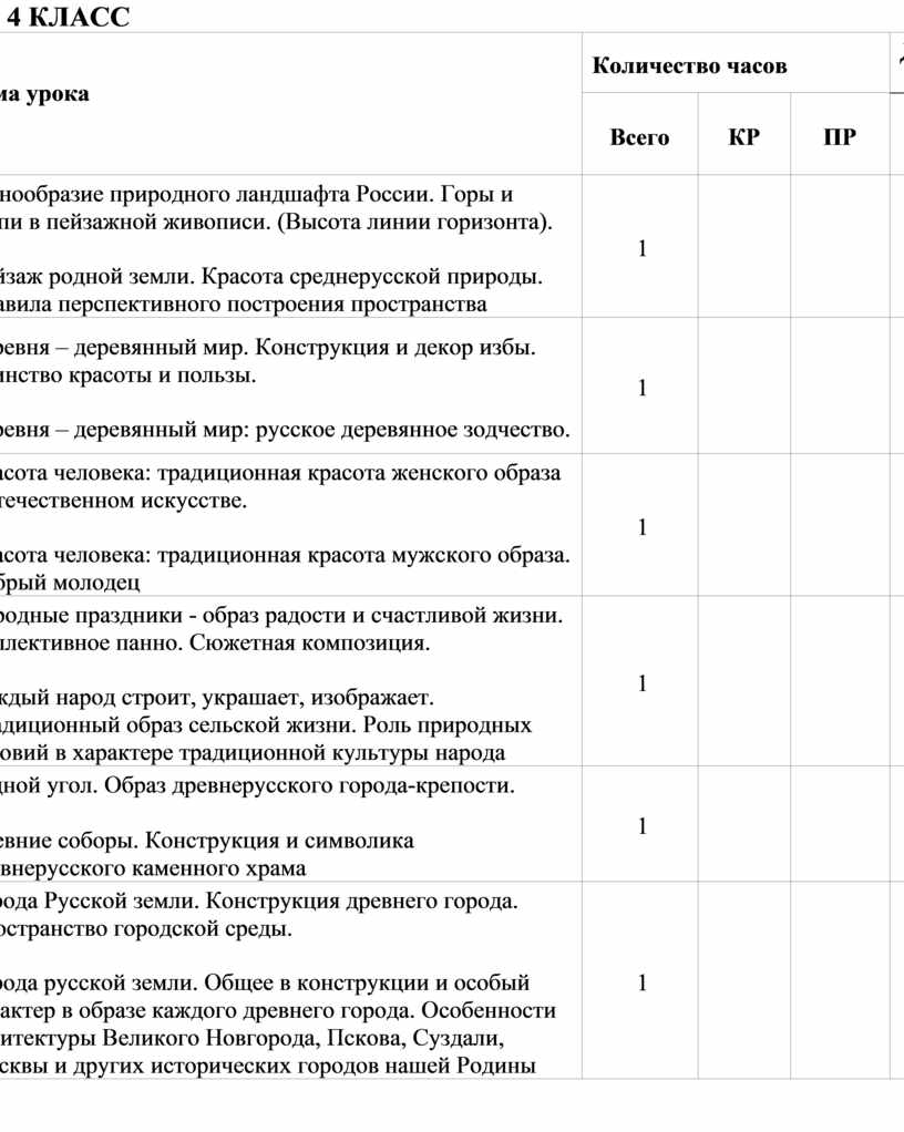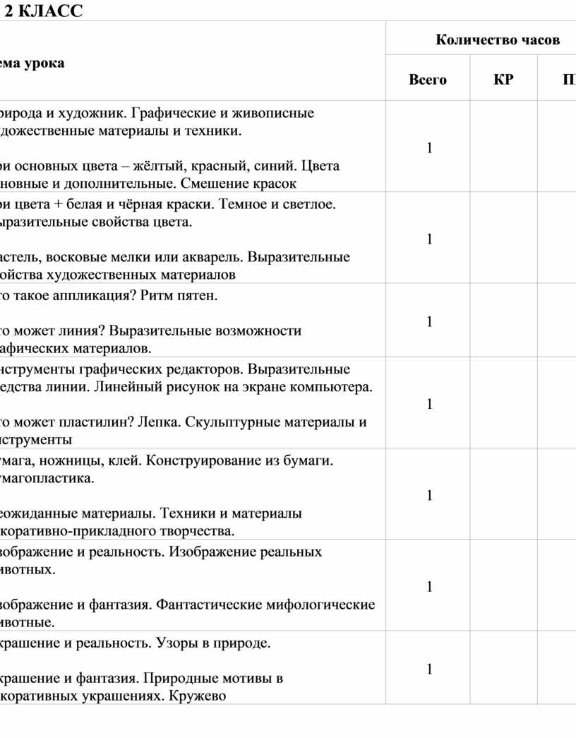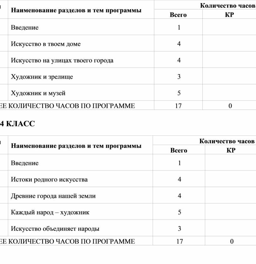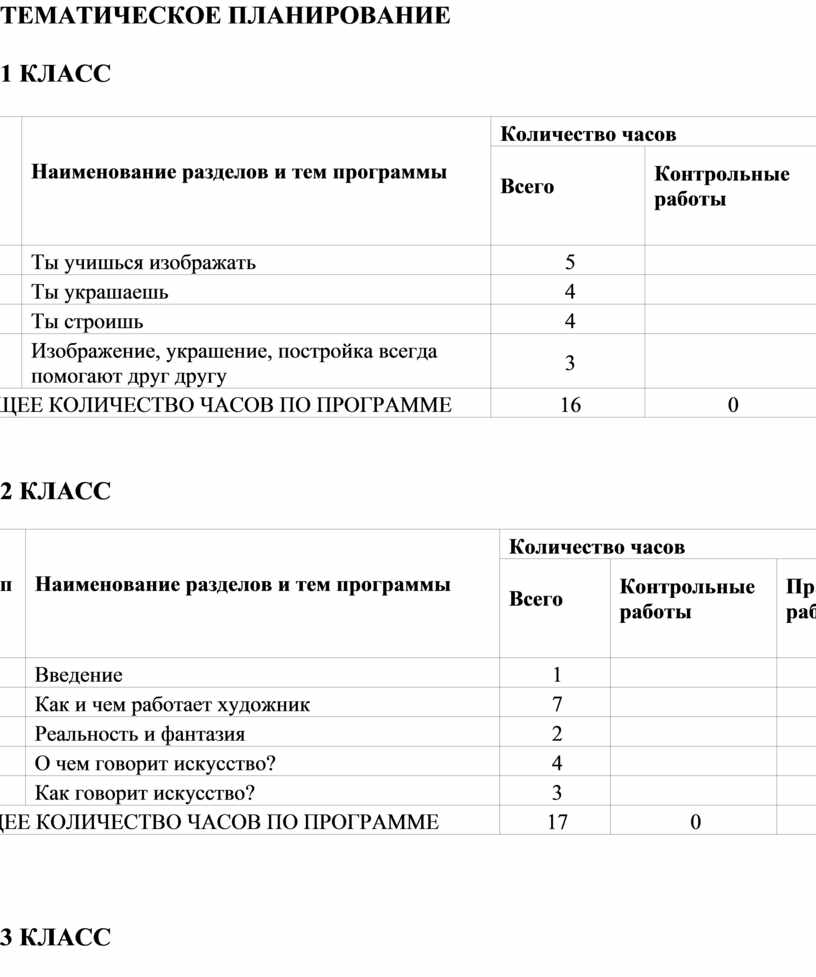 Общее число часов, рекомендованных для изучения изобразительного искусства – 67 часов: в 1 классе – 16 часов (0,5 час в неделю); во 2 классе – 17 часов (0,5 час в неделю); в 3 классе – 17 часов (0,5 час в неделю); в 4 классе – 17 часов (0,5 час в неделю).