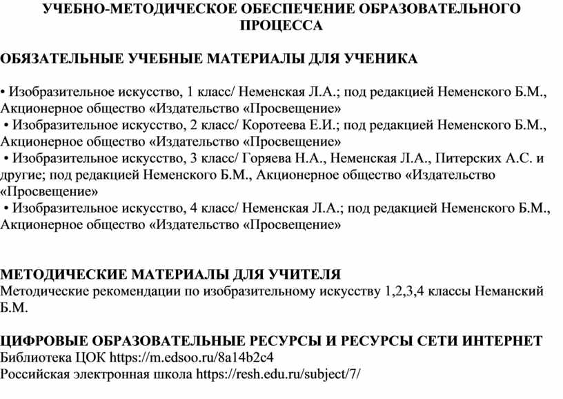 УЧЕБНО-МЕТОДИЧЕСКОЕ ОБЕСПЕЧЕНИЕ ОБРАЗОВАТЕЛЬНОГО ПРОЦЕССА