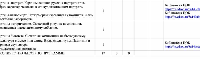 Библиотека ЦОК https://m.edsoo.ru/8a14a626 Библиотека ЦОК https://m.edsoo.ru/8a14d0d8 https://m.edsoo.ru/8a14ca48 |