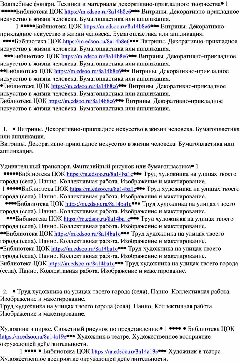 Библиотека ЦОК https://m.edsoo.ru/8a14ede8 https://m.edsoo.ru/8a14d7b8 |