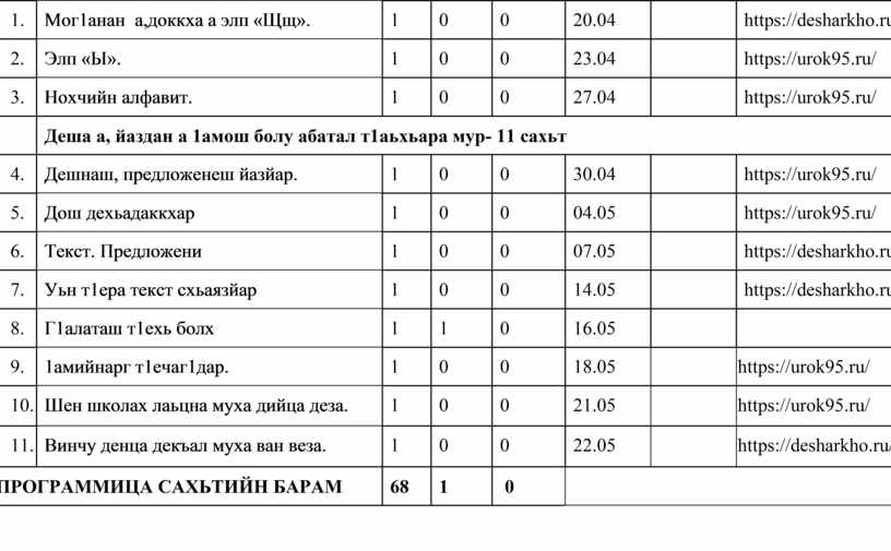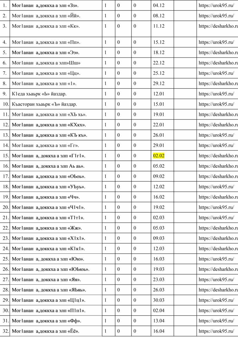 НОХЧИЙН МЕТТАН ПОУРОЧНИ ПЛАНИРОВАНИ