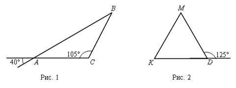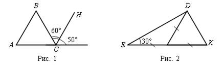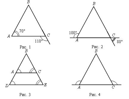 2. Треугольник АВС – равнобедренный с основанием ВС. Используя рис. 2, найдите угол С. (Ответ: 50°.)