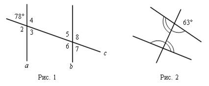 9. Прямые а и с параллельны. Найдите угол 2, если Ð1 = 124°. См. рис.1. (Ответ: 56°.)