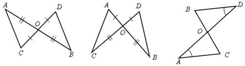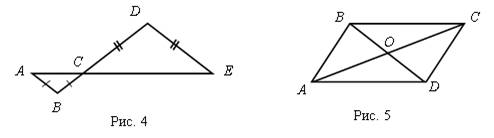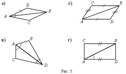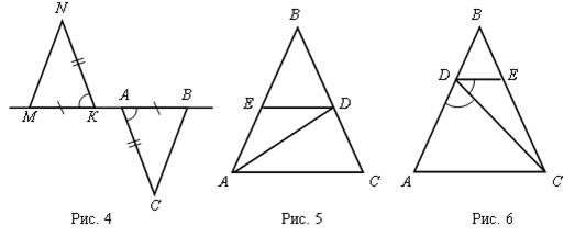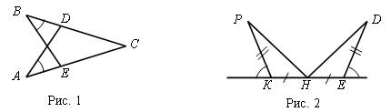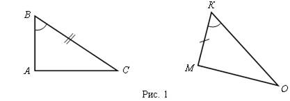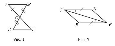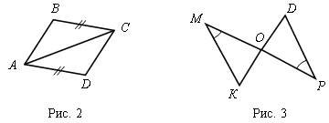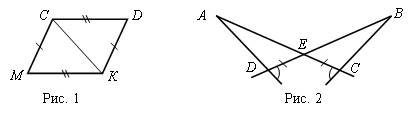 1. Учитывая пометки на рис. 1, укажите, какое равенство нужно добавить, чтобы треугольники были равны по первому признаку. (Ответ: ÐА = ÐD.)