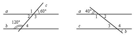 1. Прямые а и с параллельны, угол 1 равен 40°. Найдите угол 2 (см. рис. 1).