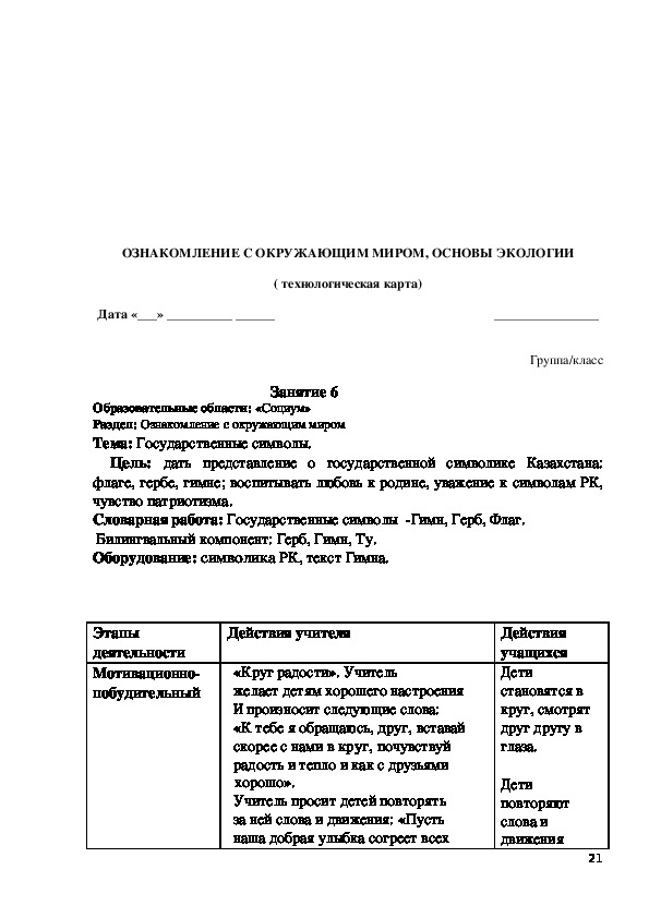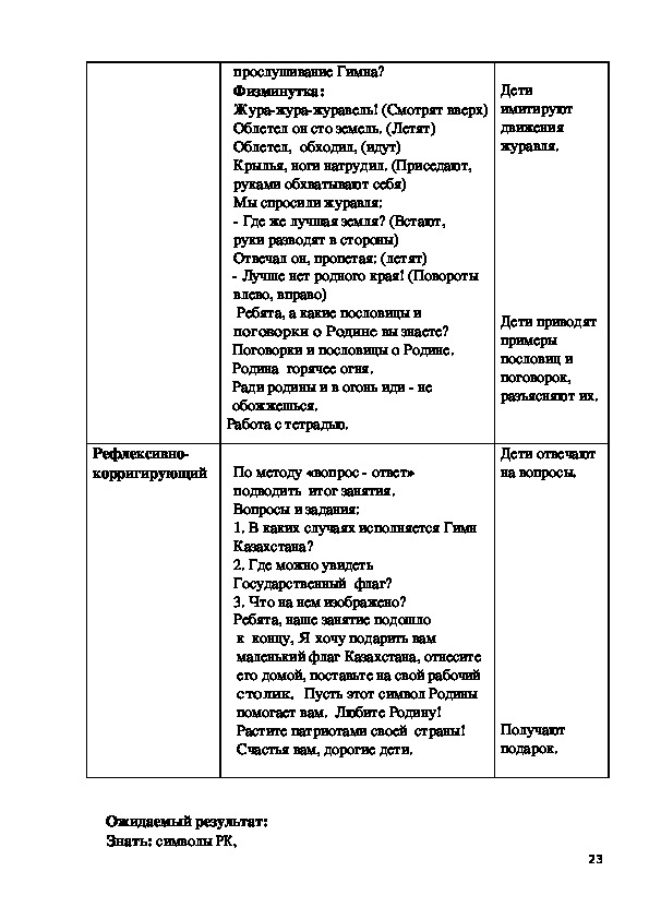 флаге, гербе, гимне; воспитывать любовь к родине, уважение к символам РК,