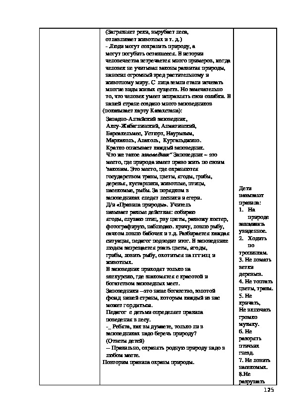 разработаем правила поведения на природе. На